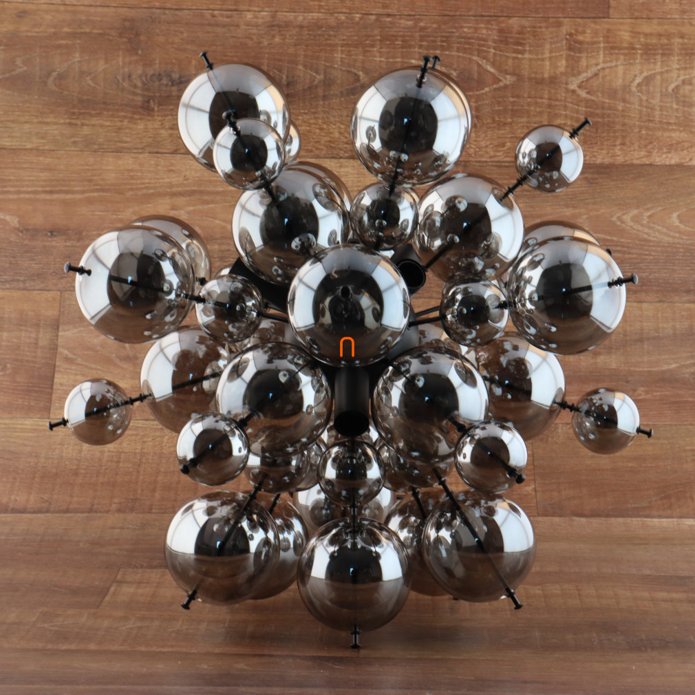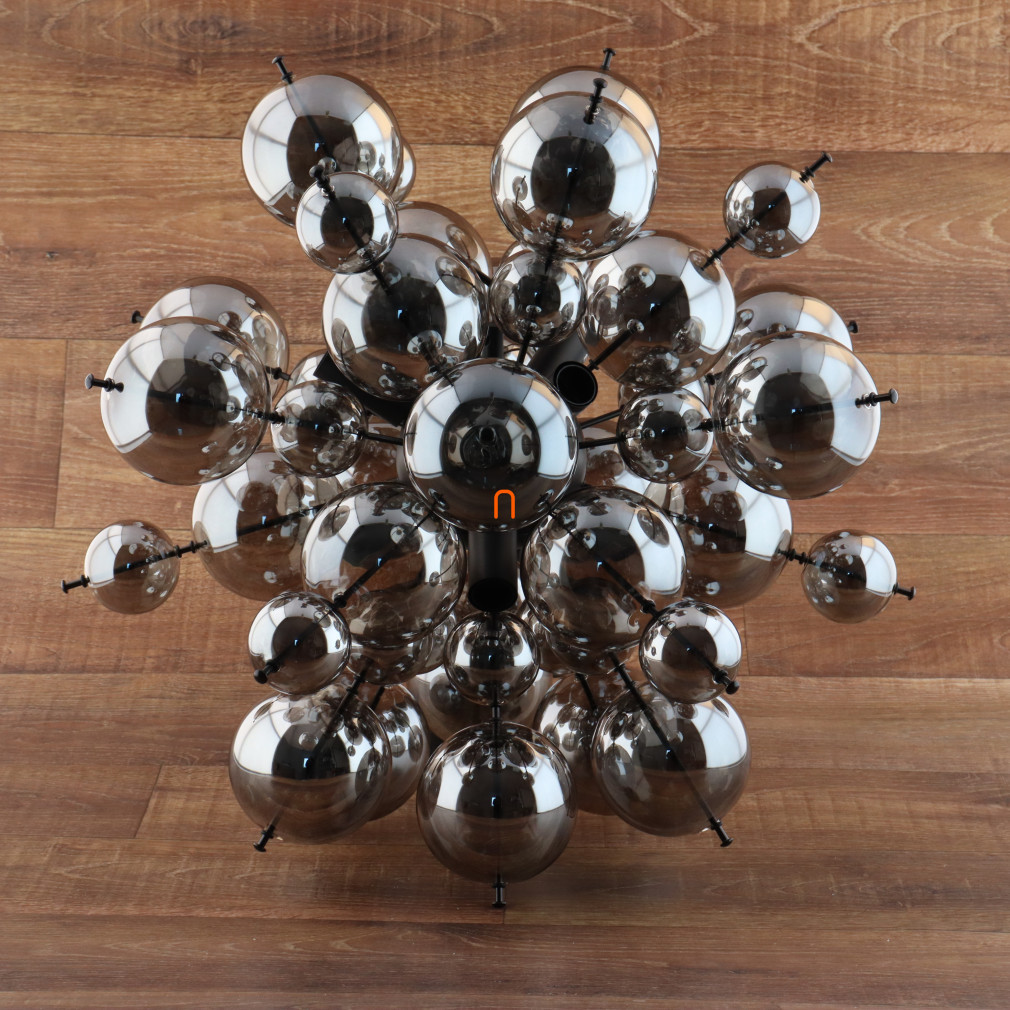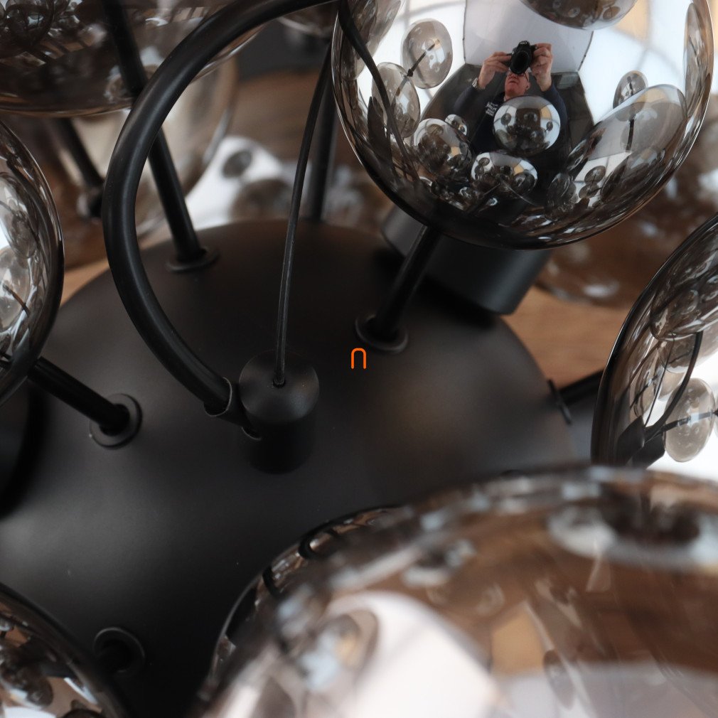 Lampa suspendată Globo Udo Globo 15633HS are un design modern, cu sfere din sticlă de culoare fumurie și o structură metalică neagră mată. Este echipată cu șase socluri E14, care pot fi prevăzute cu surse de lumină înlocuibile, permițând reglarea fluxului luminos, a temperaturii culorii și a puterii în funcție de necesități. Corpului de iluminat are un diametru de 550 mm și o înălțime de 1200 mm, fiind ideal pentru utilizarea în încăperi cu tavane înalte. Produsul are o tensiune nominală de 230 V și un grad de protecție IP20, ceea ce permite utilizarea în interior. Materialele principale ale corpului de iluminat sunt metalul și sticla, care asigură durabilitate și un aspect estetic. Dimensiunile ambalajului sunt 43 cm lățime, 26 cm lungime și 66 cm înălțime, iar lampa cântărește 3,88 kg. Sursele de lumină nu sunt incluse în pachet. Produsul este fabricat de Globo.