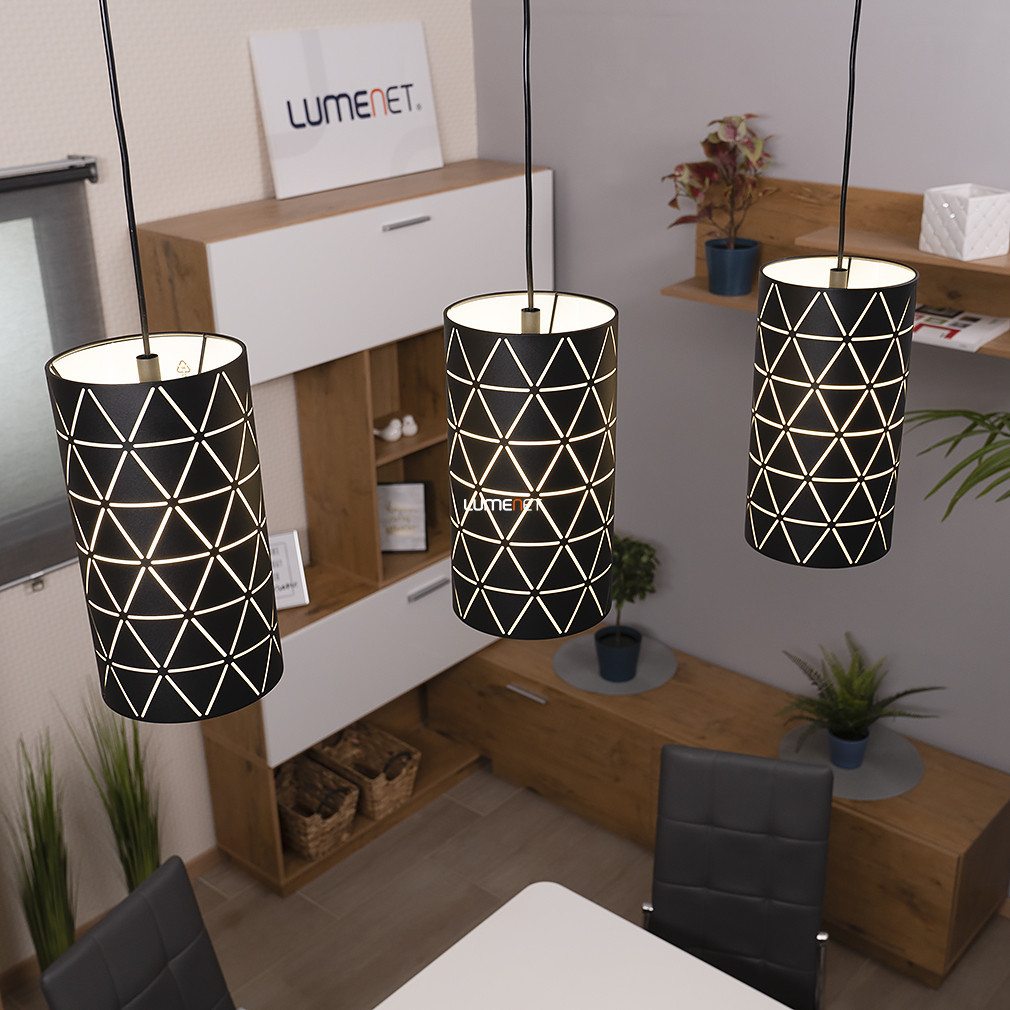 Lampă suspendată cu model, cu trei socluri, în culoare neagră - Ramon Eglo 98353