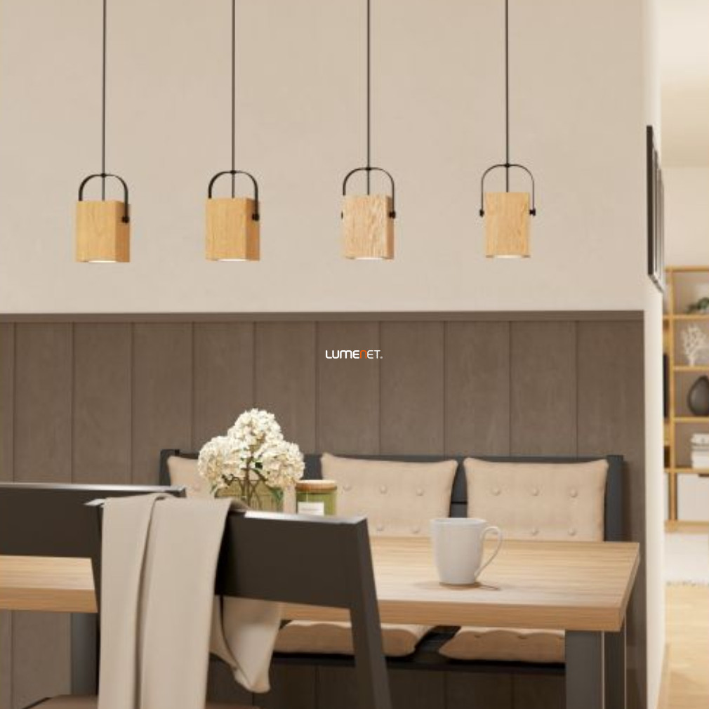 Lampă suspendată cu patru socluri, negru și culoarea lemnului - Ayles Eglo 43748