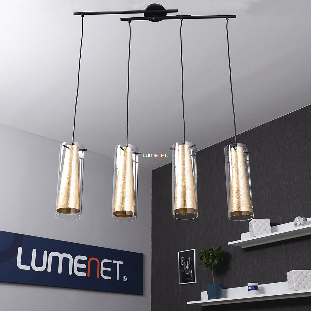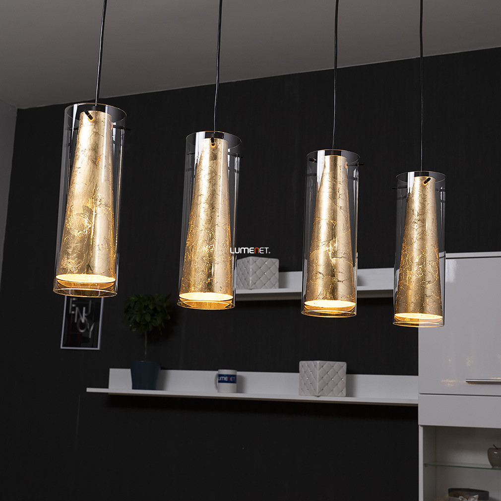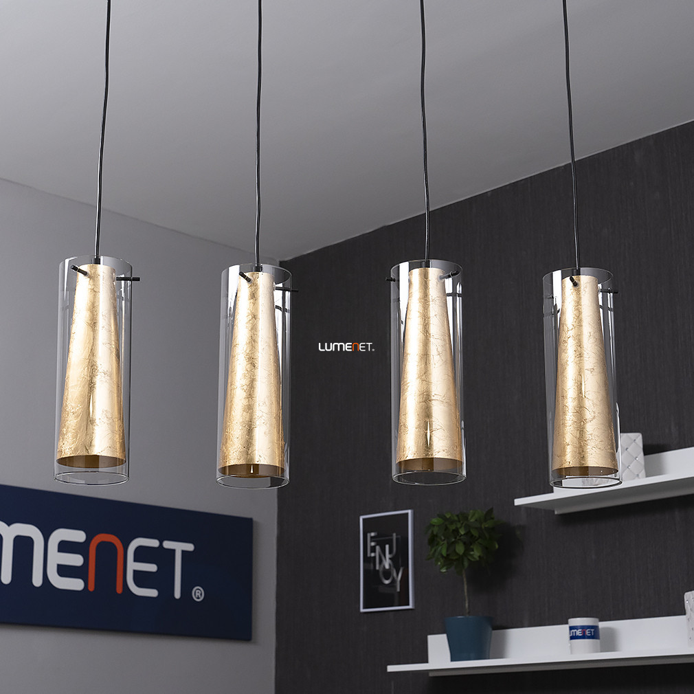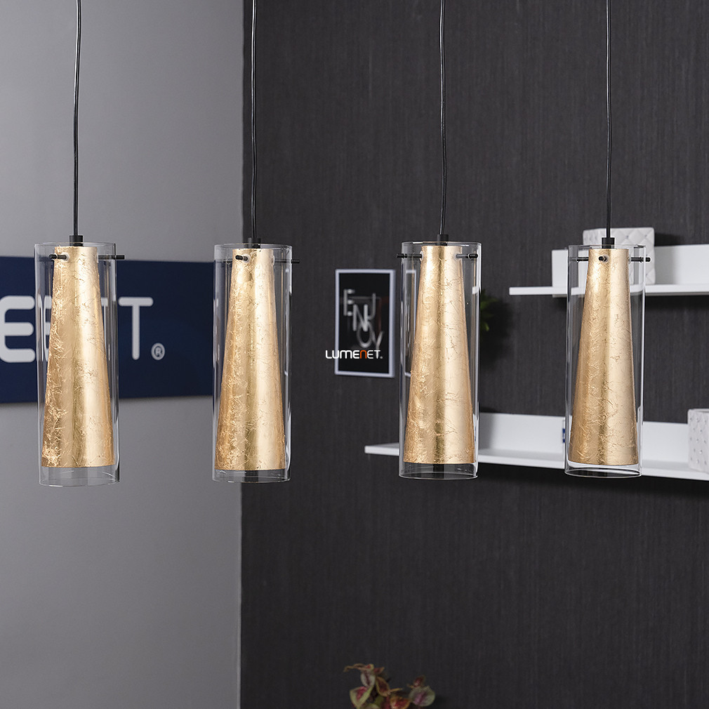 Lampă suspendată cu perete dublu din sticlă și patru socluri aurii - Pinto Eglo 97653