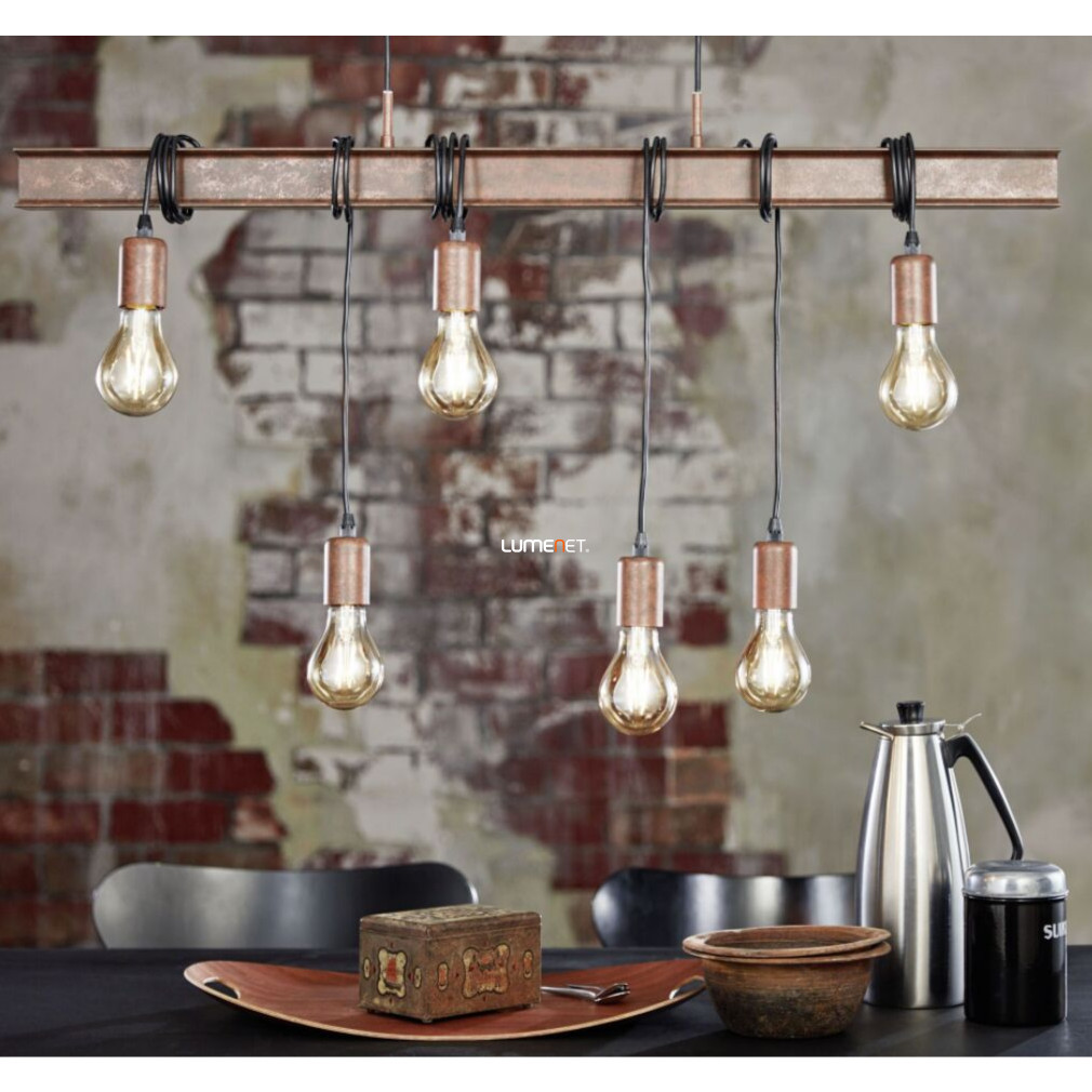 Lampă suspendată cu șase socluri, culoare maro lemn - Townshend Eglo 49859