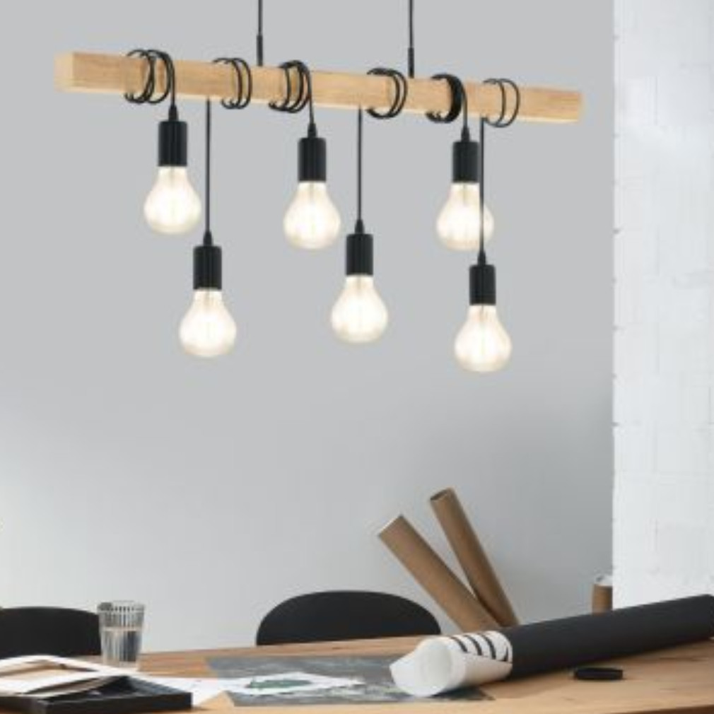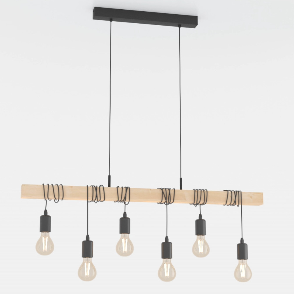 Lampa suspendată Townshend Eglo 43513 are șase socluri E27 care acceptă surse de lumină înlocuibile. Lampa este realizată într-un stil vintage, combinând oțelul negru și lemnul, conferindu-i un aspect distinctiv în orice interior. Produsul are o lungime totală de 1000 mm, o înălțime maximă de 1100 mm și o greutate de 3,61 kg. Lampa nu include o sursă de lumină, astfel încât fluxul luminos, temperatura culorii și puterea vor varia în funcție de becul ales. Are un grad de protecție IP20, ceea ce o face potrivită pentru utilizare în interior. Dimensiunile ambalajului sunt: 9 cm lățime, 14 cm lungime și 105 cm înălțime. Producătorul este EGLO.