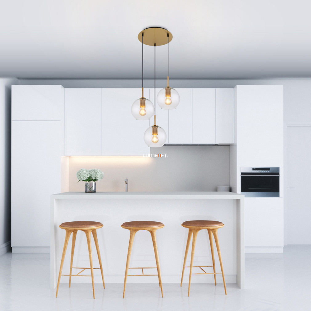 Lampă suspendată, alamă translucidă, cu trei socluri - Adara Globo 15462H2