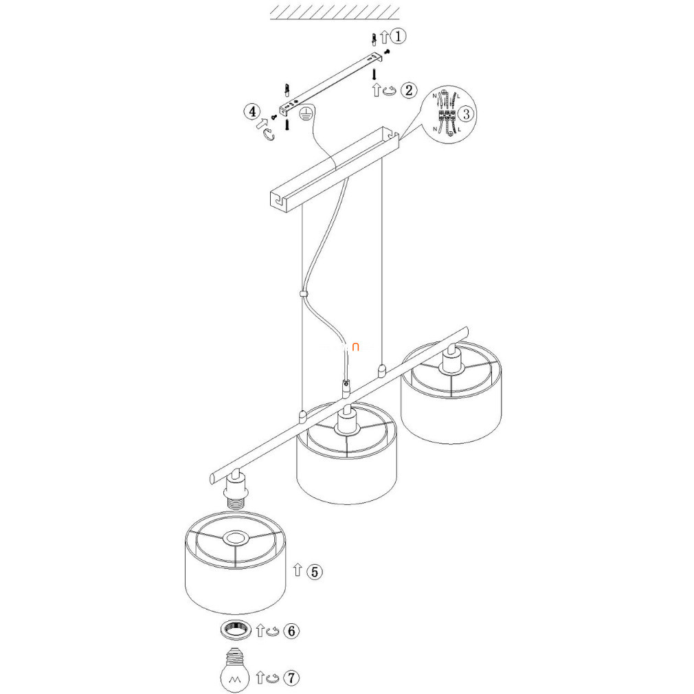Majoritatea lămpilor montate pe tavan sunt echipate din fabrică cu un cablu de 110 cm și un element de acoperire (cunoscut sub numele de „rozeta de tavan”) care ascunde conexiunea la rețeaua electrică și montarea. Lungimea suspensiei poate fi scurtată folosind șurubul de pe elementul de acoperire al tavanului, dacă utilizatorul dorește să atârne lampa la o lungime mai mică de 110 cm în cameră. Cablul în exces poate fi ascuns sub elementul de acoperire al tavanului (fără reinstalare) sau, dacă nu există suficient spațiu, poate fi tăiat și reconectat la blocul terminal într-un mod estetic plăcut. Acest lucru trebuie făcut cu alimentarea deconectată sau cu ajutorul unui electrician profesionist.