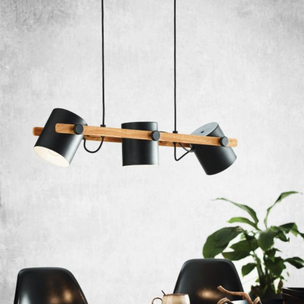 Lampă suspendată cu trei socluri, culoare negru-bej-lemn - Hornwood Eglo 43517