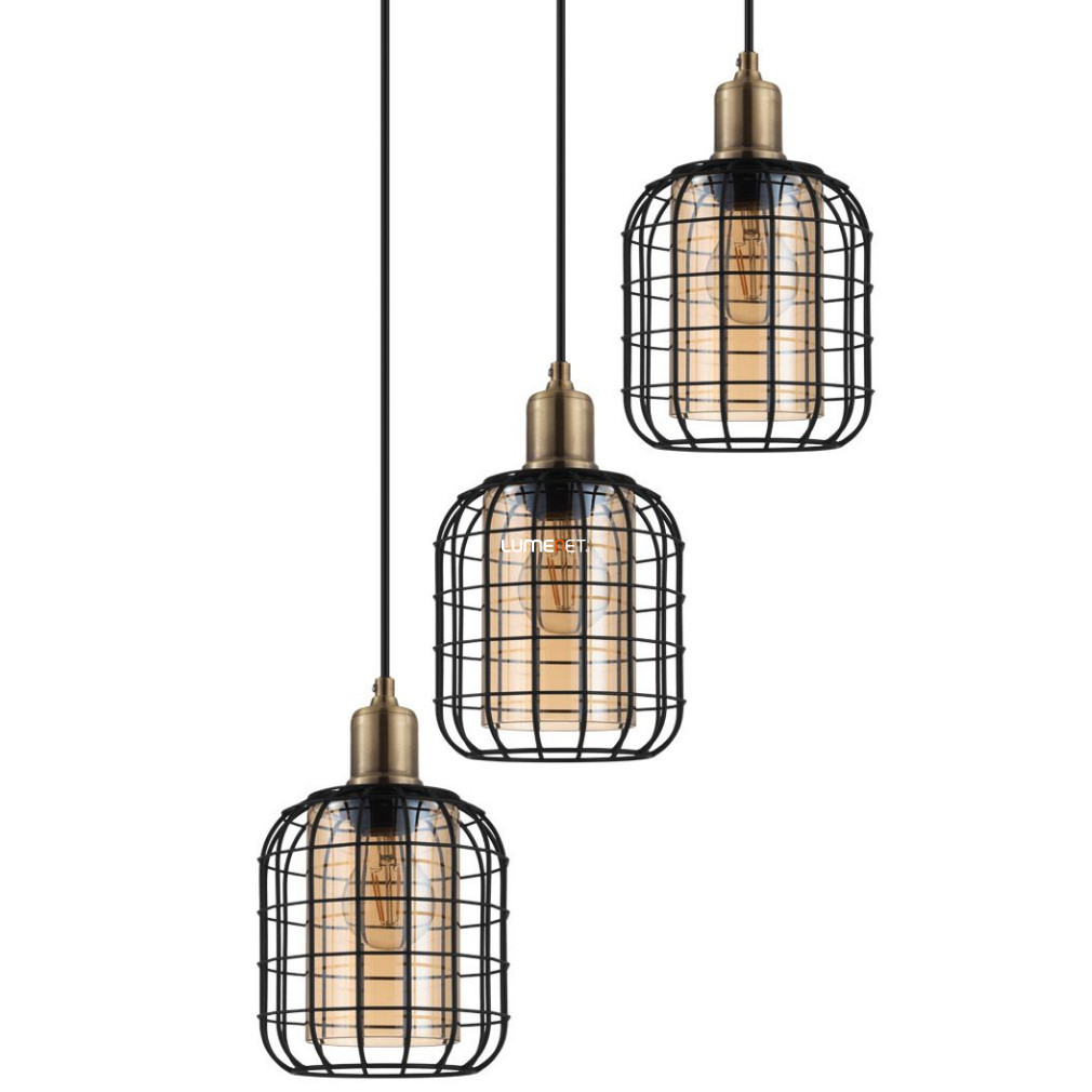 Lampă suspendată cu trei socluri, culoare negru-bronz-chihlimbar - Chisle Eglo 43499