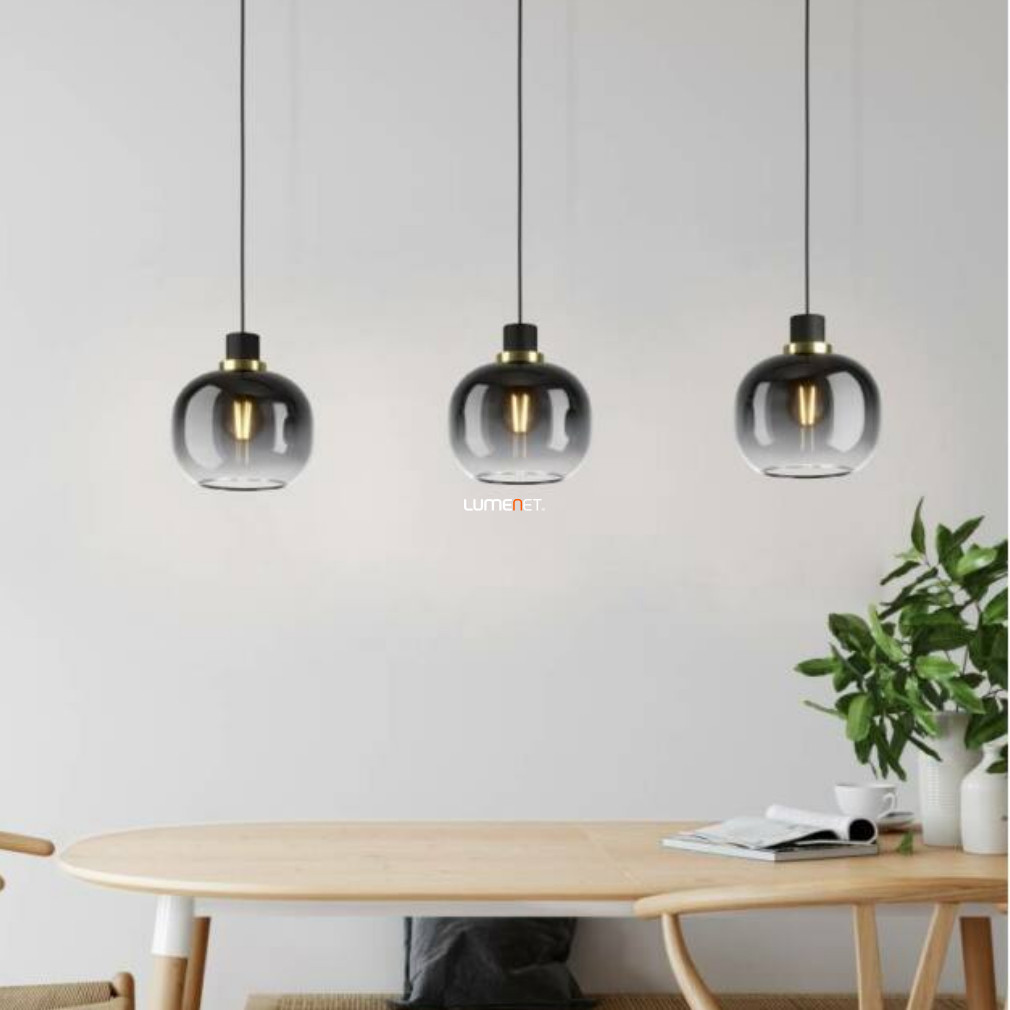 Lampă suspendată cu trei socluri, negru-alamă-gri - Oilella Eglo 99617