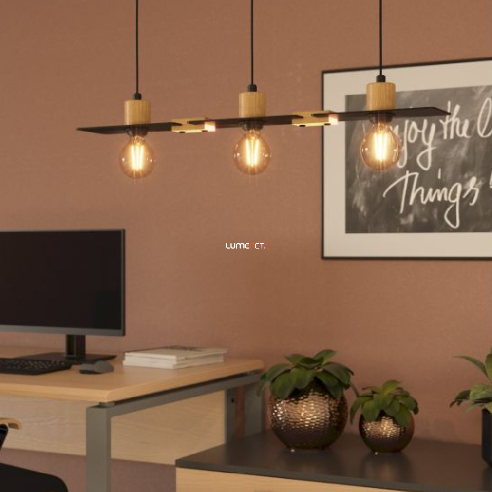 Lampă suspendată cu trei socluri, negru și culoarea lemnului - Bramerton Eglo 43752