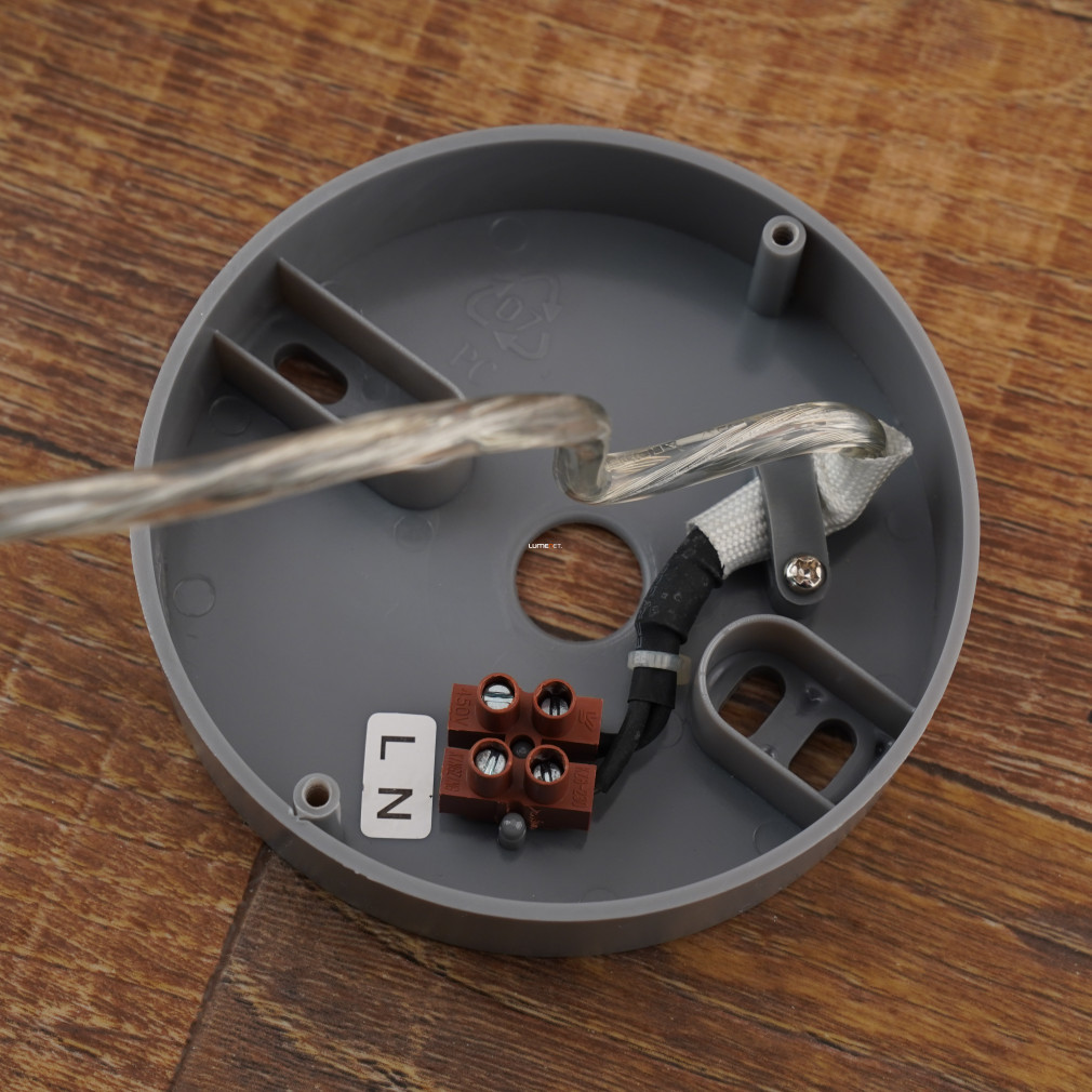 Majoritatea lămpilor montate pe tavan sunt echipate din fabrică cu un cablu de 110 cm și un element de acoperire (cunoscut sub numele de „rozeta de tavan”) care ascunde conexiunea la rețeaua electrică și montarea. Lungimea suspensiei poate fi scurtată folosind șurubul de pe elementul de acoperire al tavanului, dacă utilizatorul dorește să atârne lampa la o lungime mai mică de 110 cm în cameră. Cablul în exces poate fi ascuns sub elementul de acoperire al tavanului (fără reinstalare) sau, dacă nu există suficient spațiu, poate fi tăiat și reconectat la blocul terminal într-un mod estetic, ceea ce trebuie făcut cu alimentarea deconectată sau cu ajutorul unui electrician profesionist.