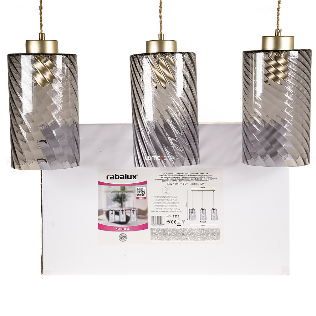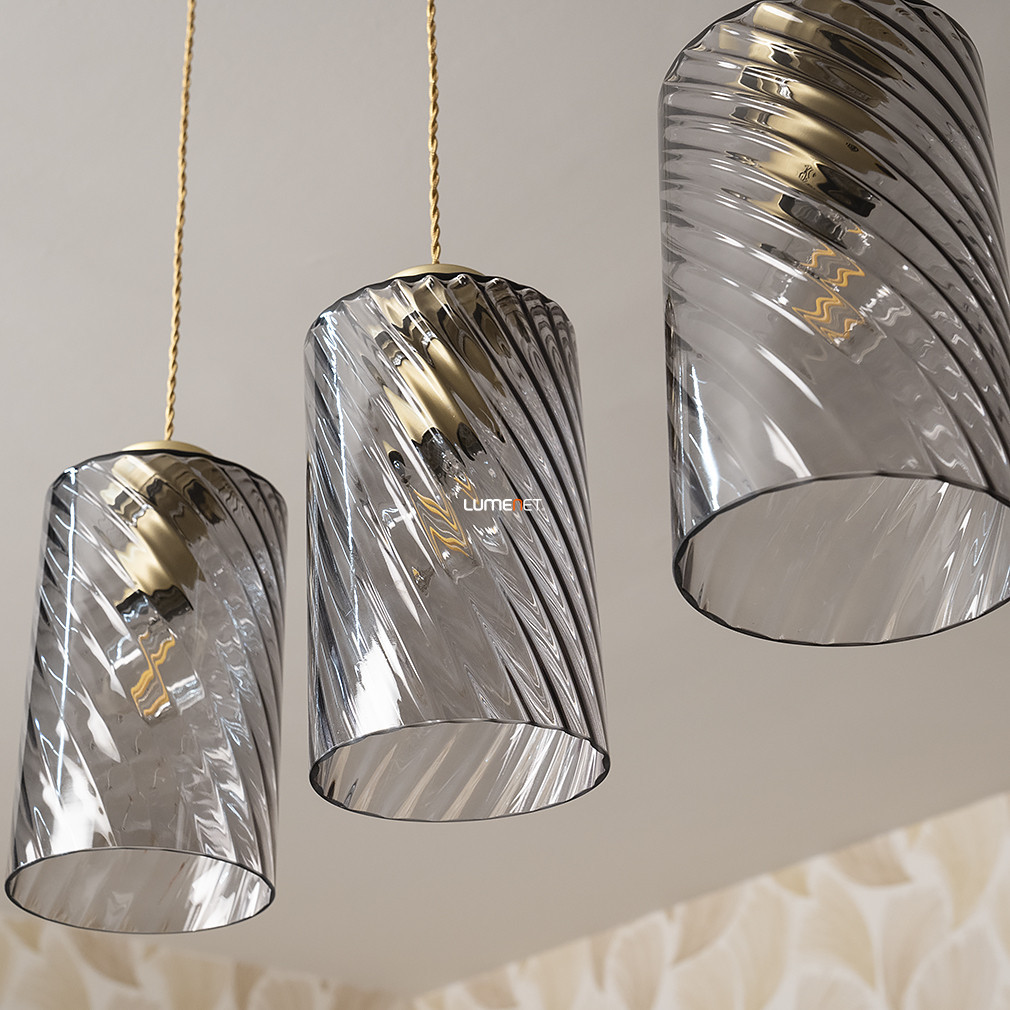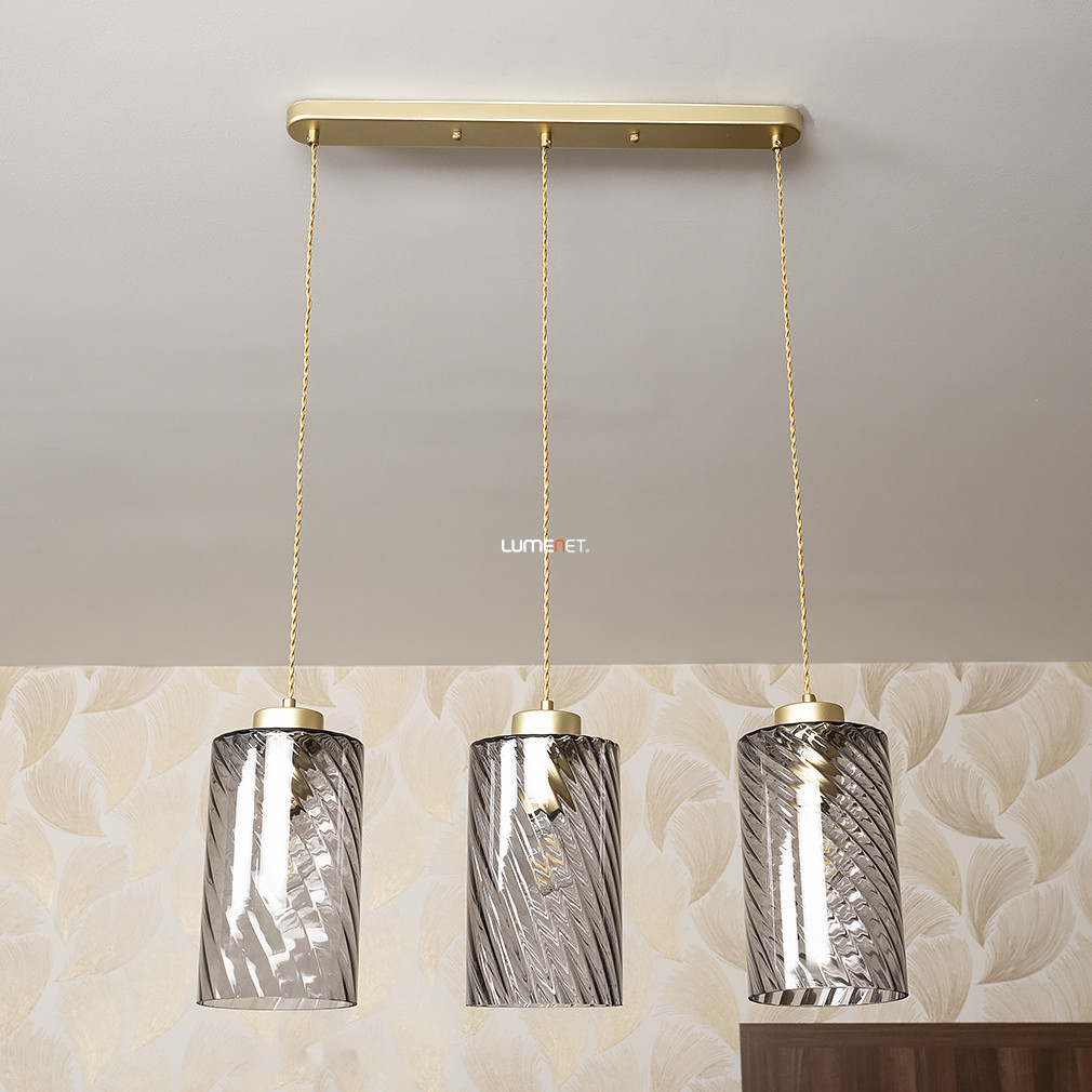 Lampă suspendată de culoare fumurie cu cablu textil auriu, 3 socluri - Sheila Rábalux 5229