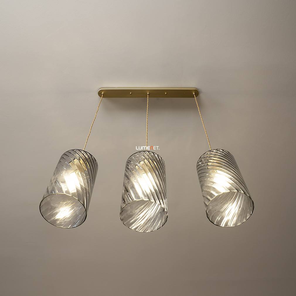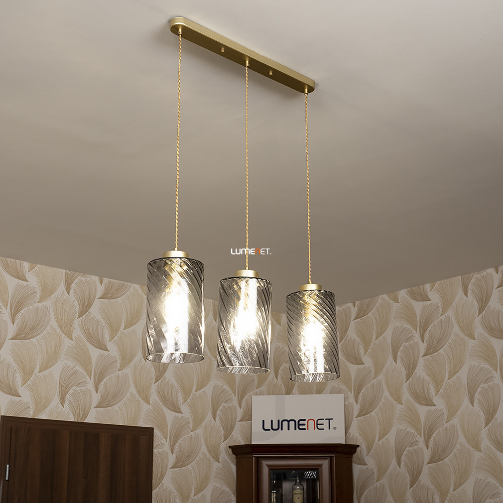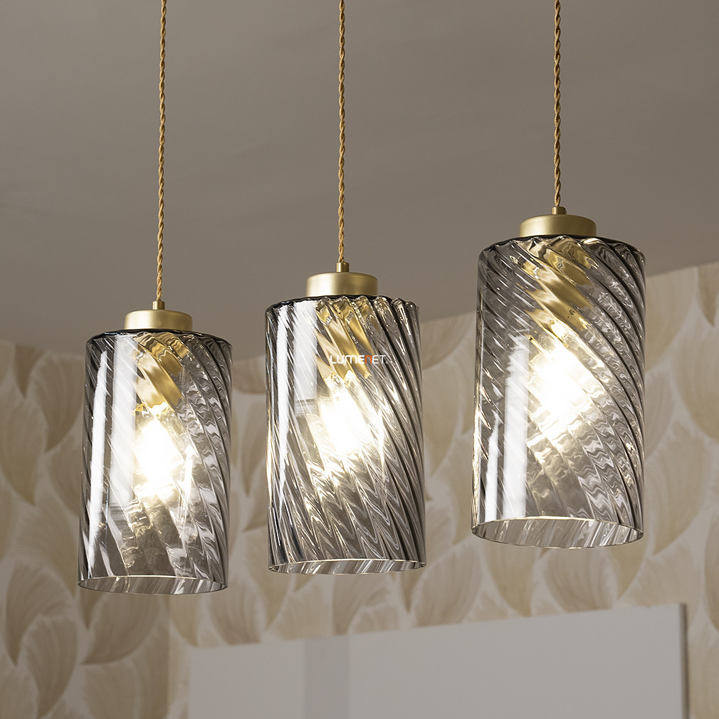 Lampă suspendată de culoare fumurie cu cablu textil auriu, 3 socluri - Sheila Rábalux 5229