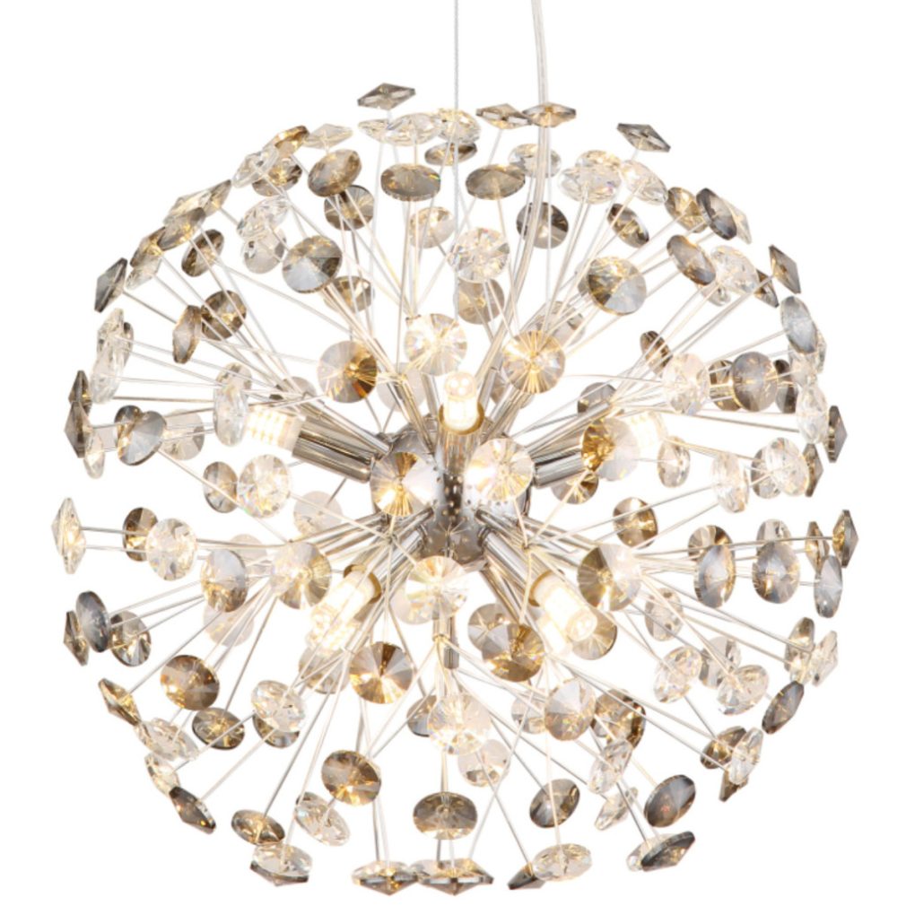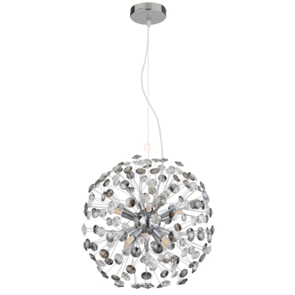 Lampă suspendată de designer, cristal dandelion, crom, culoare fum, 40 cm - Katrina Globo 64135H1C