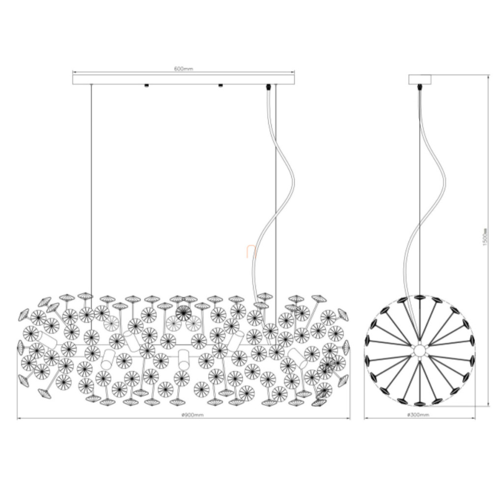 Lampă suspendată de designer, cristal dandelion, crom, culoare fum - Katrina Globo 64135H4C