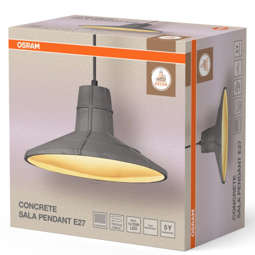 Lampă suspendată din beton - Osram Decor Concrete Sala, cu soclu 1xE27, 220-240 V
