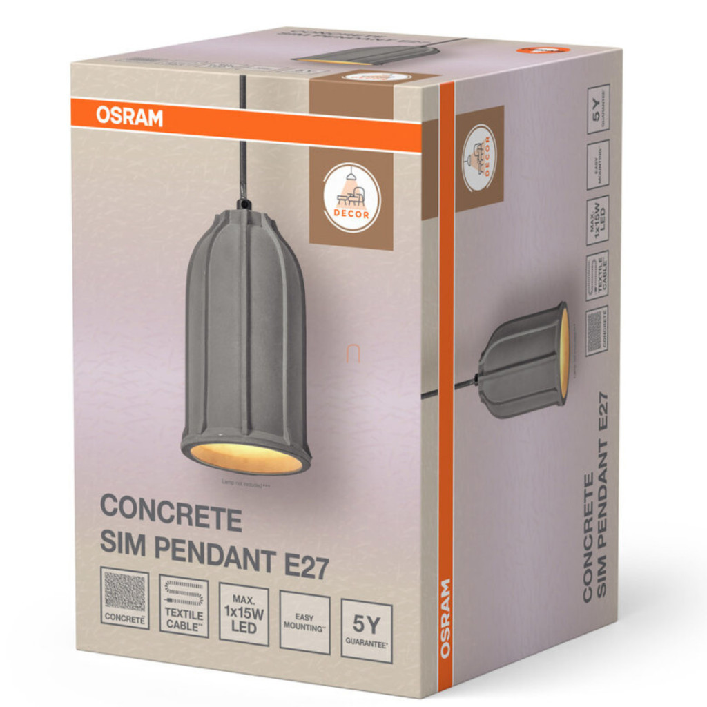 Lampă suspendată din beton - Osram Decor Concrete Sim, cu soclu 1xE27, 220-240 V