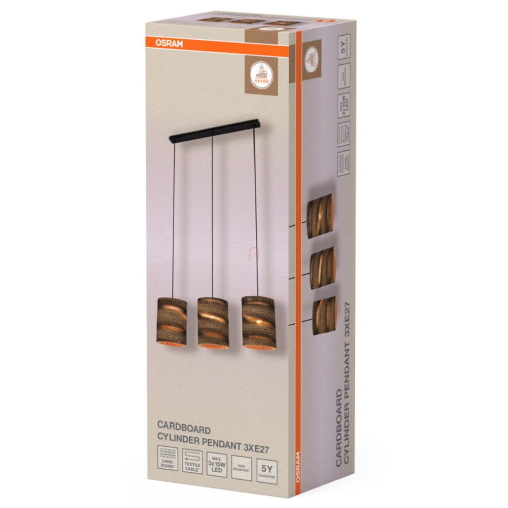 Lampă suspendată din hârtie - Osram Decor Cardboard Cylinder, cu soclu 3xE27, 220-240 V
