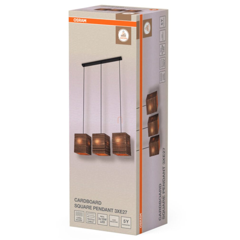 Lampă suspendată din hârtie - Osram Decor Cardboard Square Pend, cu soclu 3xE27, 220-240 V