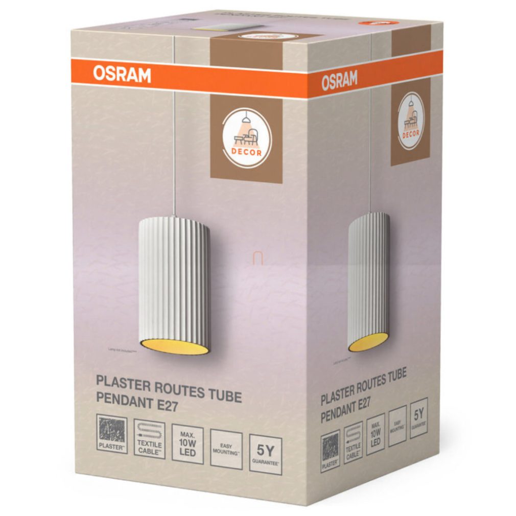 Lampă suspendată din ipsos - Osram Decor Plaster Routes Tube, cu soclu 1xE27, 220-240 V
