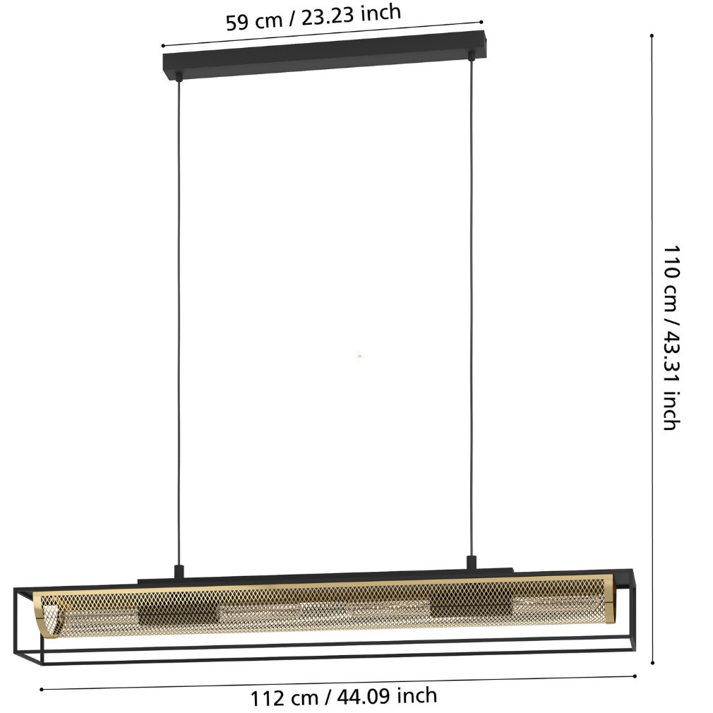 Lampa suspendată din plasă metalică Nohales Eglo 43788 în culoarea auriu oferă o soluție modernă de iluminat pentru casa dvs., fiind echipată cu patru socluri E27. Corpul lămpii este realizat din oțel într-o combinație de negru și auriu, conferindu-i un aspect elegant. Lampa are o lungime totală de 1120 mm, o lățime de 170 mm și o înălțime de 1500 mm, fiind potrivită pentru iluminarea spațiilor mai mari. Produsul are un grad de protecție IP20 și, prin urmare, este recomandat pentru utilizare în interior. Sursa de lumină nu este inclusă, astfel încât fluxul luminos, puterea și temperatura culorii pot varia în funcție de becul ales. Produsul cântărește 5,045 kg, iar dimensiunile ambalajului sunt 1130 mm lungime, 180 mm lățime și 180 mm înălțime. Lampa Nohales Eglo 43788 este fabricată de EGLO și are codul logistic 43788.