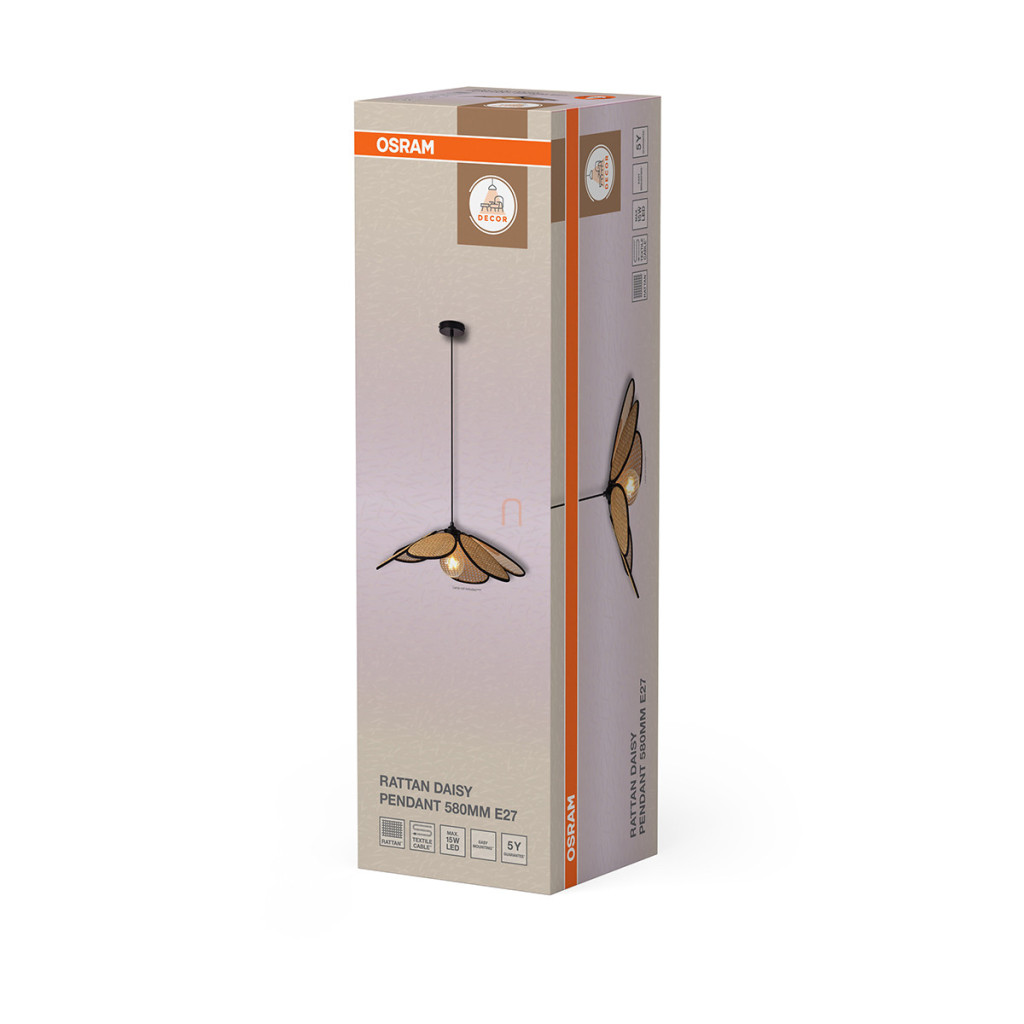 Lampă suspendată din ratan, 58 cm - Osram Decor Rattan Daisy, cu soclu 1xE27, 220-240 V