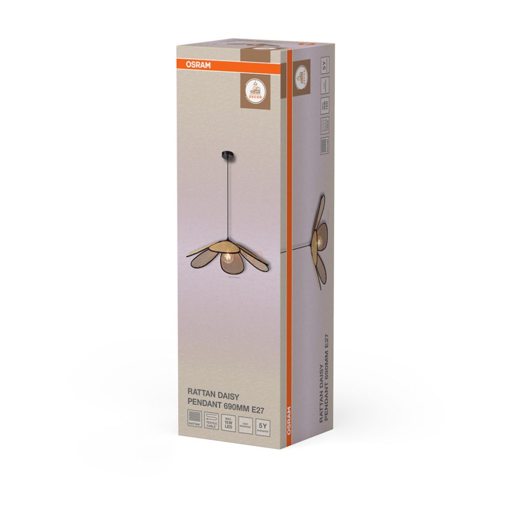 Lampă suspendată din ratan, 69 cm - Osram Decor Rattan Daisy, cu soclu 1xE27, 220-240 V
