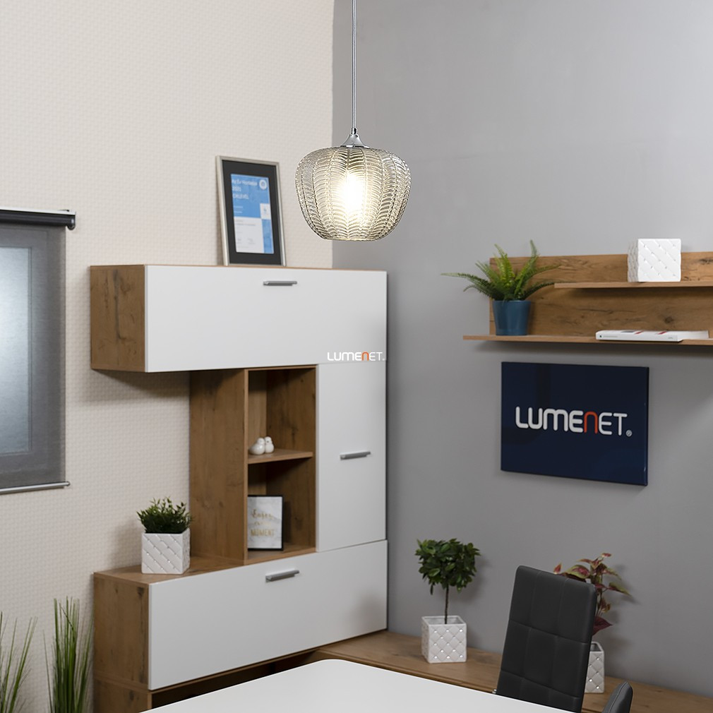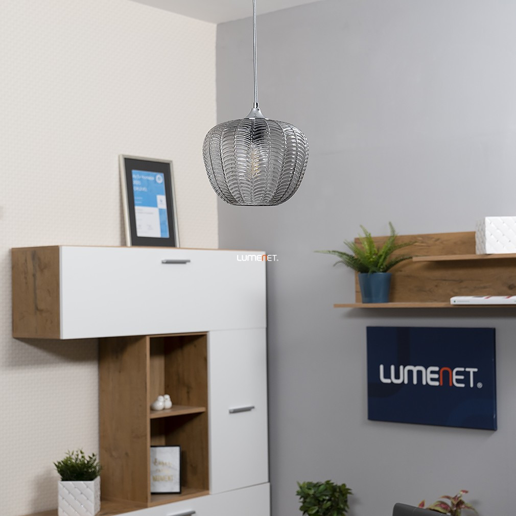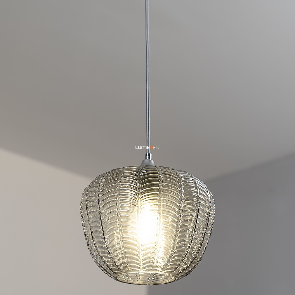 Lampa suspendată Monet Rábalux 3177 este un corp de iluminat în stil modern, cu un abajur din sticlă cu model și o suprafață cromată, de culoare fumurie. Materialele principale ale lămpii sunt metalul și sticla, are un soclu E27 și poate fi utilizată cu o singură sursă de lumină, care nu este inclusă. Lampa este proiectată pentru surse de lumină înlocuibile, astfel încât fluxul luminos, culoarea luminii, puterea și temperatura culorii depind de becul ales. Produsul nu este reglabil, are un grad de protecție IP20 și este recomandat pentru utilizare în interior. Diametrul său este de 235 mm, înălțimea maximă este de 1900 mm, iar greutatea este de 1,32 kg. Dimensiunile ambalajului sunt: 23 cm lățime, 27 cm lungime și 34 cm înălțime. Producătorul este Rábalux.