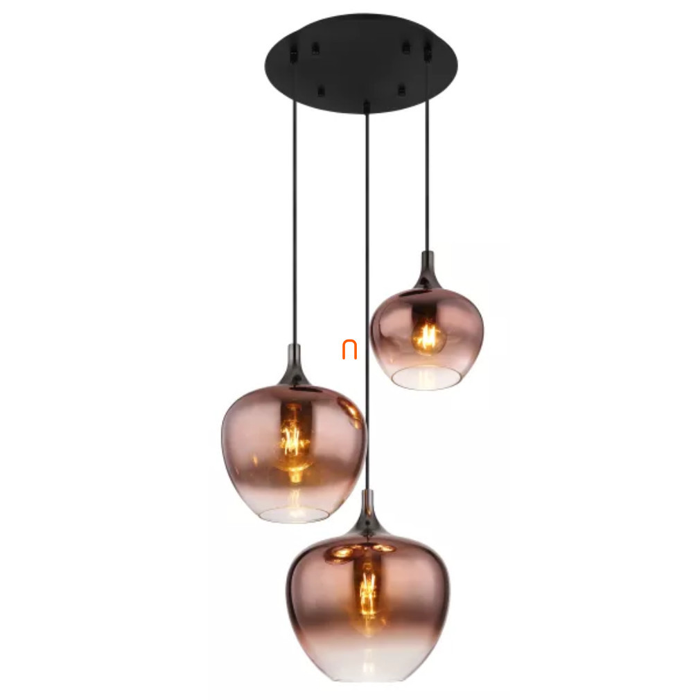 Lampă suspendată din sticlă în nuanțe de cupru roșu, cu 3 socluri - Maxy Globo 15548-3HG