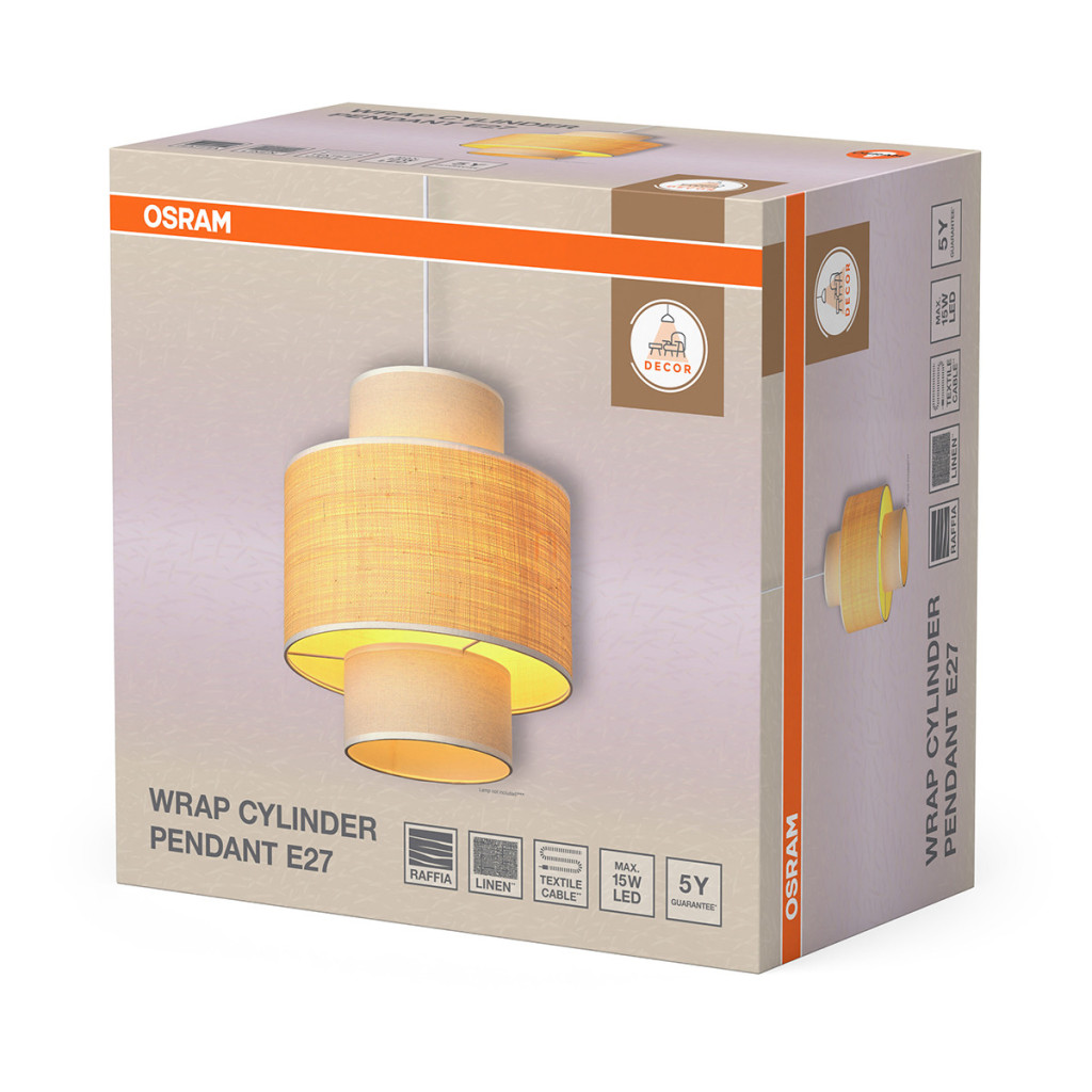 Lampă suspendată din țesătură - Osram Decor Wrap Cylinder, cu soclu 1xE27, 220-240 V