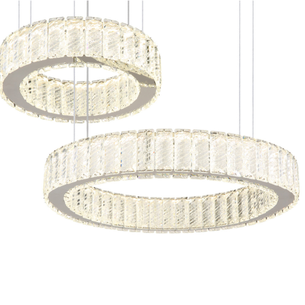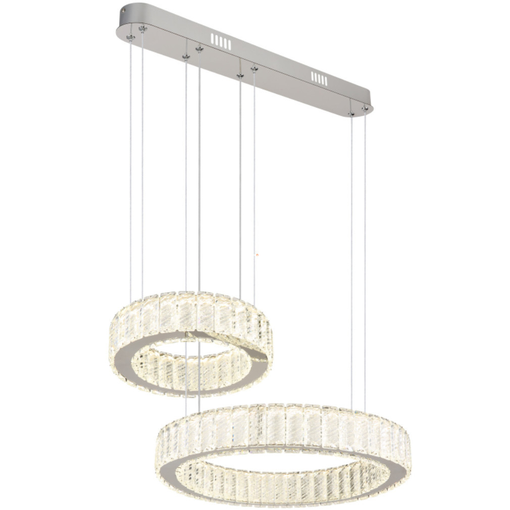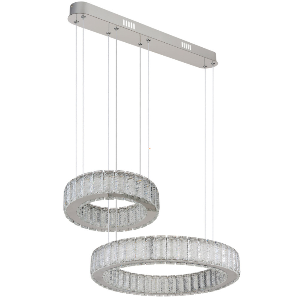 Lampa cu cristale LED suspendată dublu Mucky Globo 67162-80 combină funcționalitatea și estetica cu tehnologia modernă de iluminat pentru locuințe. Modulul LED de 80 W cu sursă de lumină încorporată oferă un flux luminos de 4405 lumeni, cu o temperatură de culoare care poate fi reglată între 2700 și 6000 Kelvin, permițând efecte de iluminare atât alb rece, cât și alb cald. Corp de iluminat este fabricat din metal și cristal K5 de culoare crom, ceea ce îi conferă un aspect elegant în orice interior. Produsul are protecție IP20 și, prin urmare, este recomandat pentru utilizare în interior. Iluminatul poate fi controlat cu ajutorul unui întrerupător de perete sau al telecomenzii incluse, care permite reglarea ușoară a luminozității și a temperaturii culorii și are, de asemenea, o funcție de memorie și lumină de veghe. Dimensiuni: lungime 630 mm, lățime 500 mm, înălțime 1200 mm. Dimensiuni ambalaj: 68x56x15 cm. Codul logistic al lămpii este 67162-80, iar aceasta este fabricată de Globo.