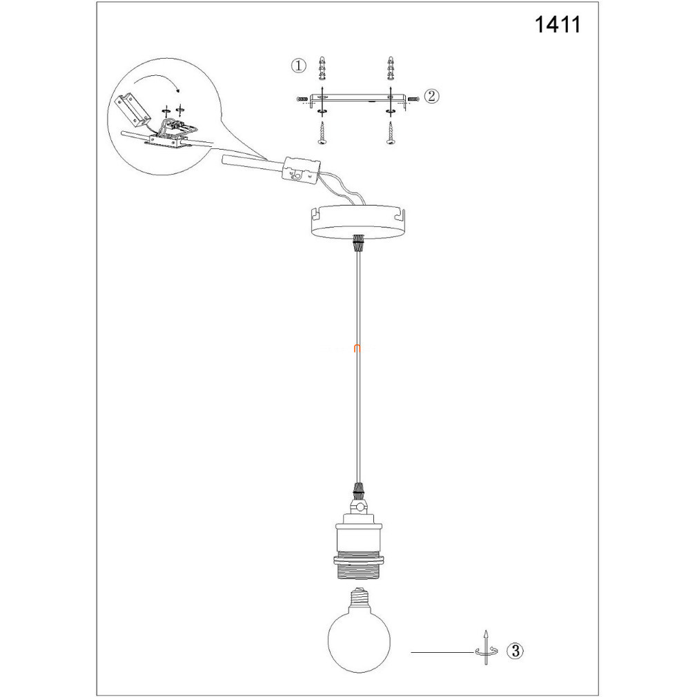 Majoritatea lămpilor montate pe tavan sunt echipate din fabrică cu un cablu de 110 cm și un element de acoperire (cunoscut sub numele de „rozeta de tavan”) care ascunde conexiunea la rețeaua electrică și montarea. Lungimea suspensiei poate fi scurtată folosind șurubul de pe elementul de acoperire al tavanului, dacă utilizatorul dorește să atârne lampa la o lungime mai mică de 110 cm în cameră. Cablul în exces poate fi ascuns sub elementul de acoperire al tavanului (fără reinstalare) sau, dacă nu există suficient spațiu, poate fi tăiat și reconectat la blocul terminal într-un mod estetic plăcut. Acest lucru trebuie făcut cu alimentarea deconectată sau cu ajutorul unui electrician profesionist.