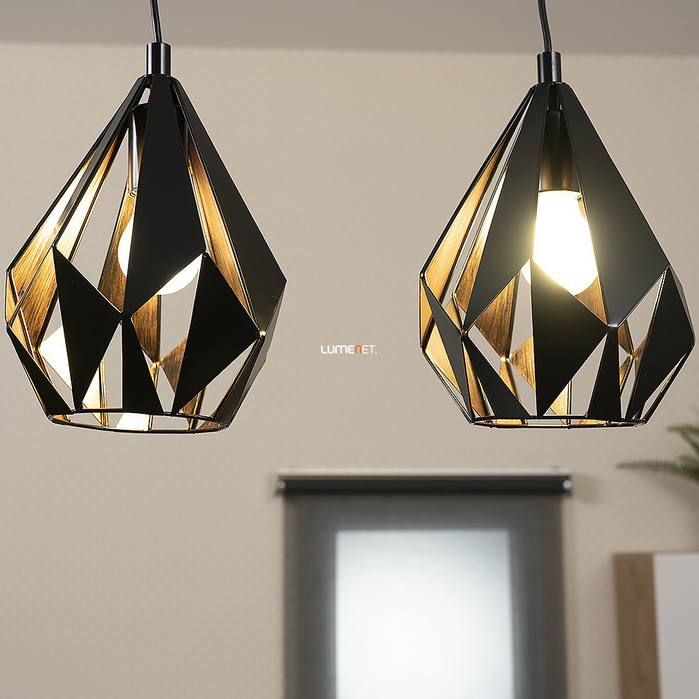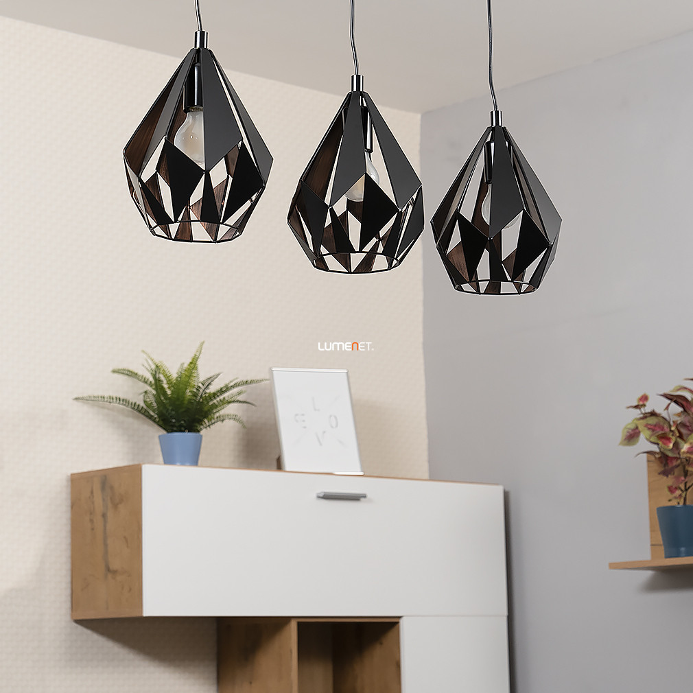 Lampă suspendată în culori negru și roșu cupru, cu trei socluri - Carlton 1 Eglo 49991