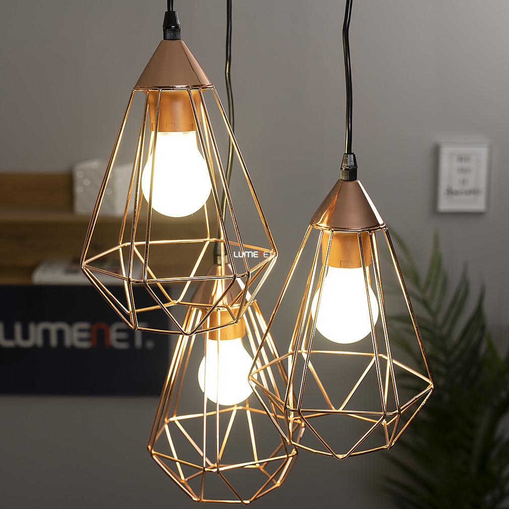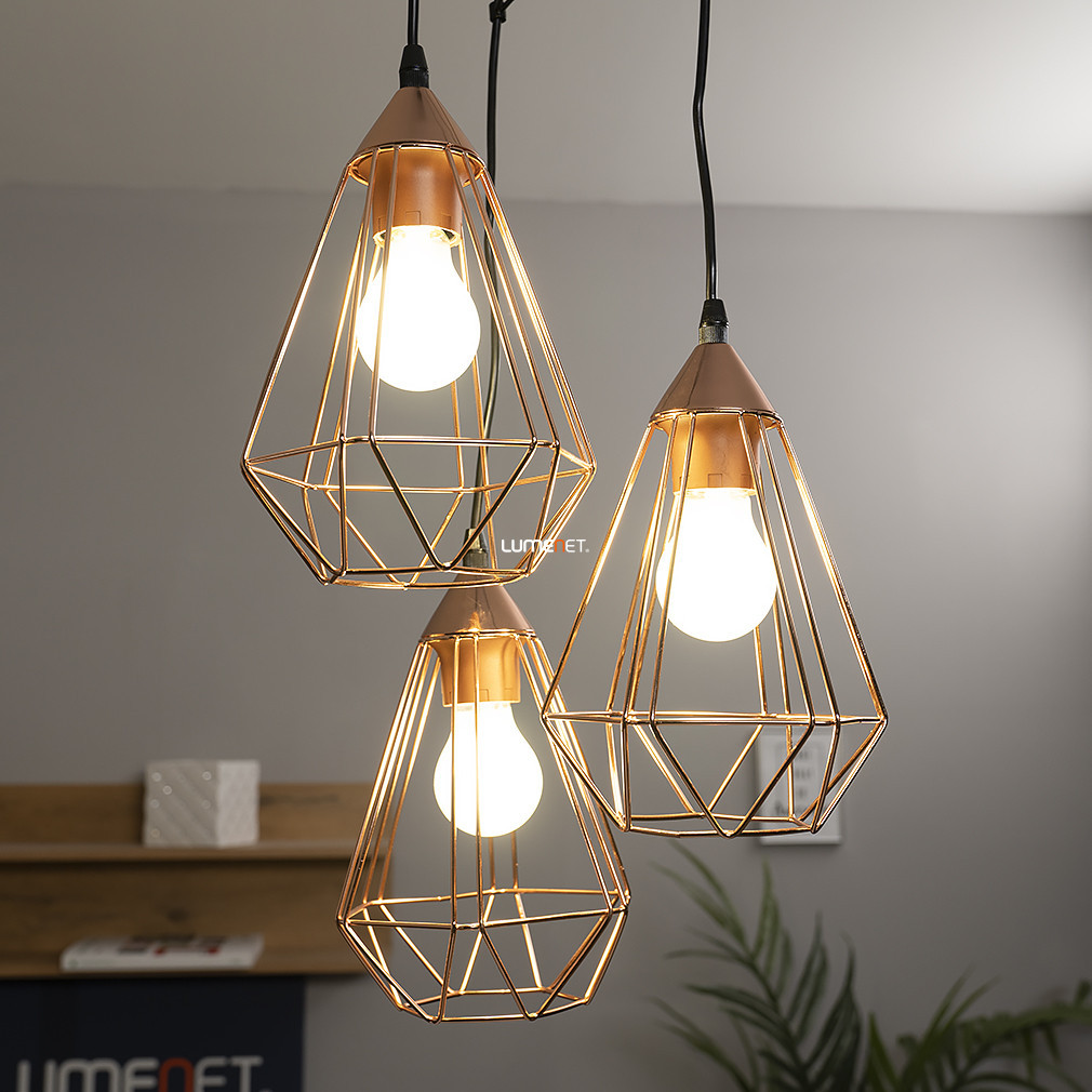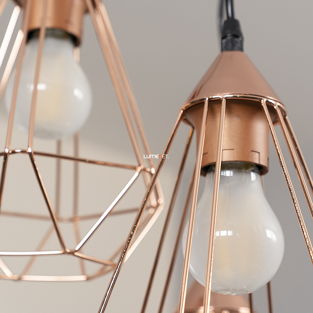 Lungimea cablurilor poate fi ajustată individual, permițând varierea înălțimii lămpilor, fie aliniate complet, fie dispuse în zig-zag, rezultând o experiență spațială mai dinamică. Datorită opțiunilor sale de design, Tarbes 94196 nu este doar o soluție de iluminat practică, ci și una decorativă, care se adaptează caracteristicilor spațiului și funcției sale. Suprafața de culoare roșu-cupru nu necesită întreținere specială, este rezistentă la uzură și decolorare și își păstrează aspectul elegant timp de mulți ani. Construcția integrală din metal asigură durabilitatea, iar designul din plasă metalică este ușor de curățat, deoarece nu colectează praful în aceeași măsură ca abajururile închise. Tarbes Eglo 94196 este conceput pentru cei care doresc să pună în evidență iluminatul, mai degrabă decât să îl ascundă. Acest model poate fi coordonat perfect cu alte piese din colecție, cum ar fi corpuri de iluminat suspendate mai mici, lămpi de masă sau lămpi de perete, pentru a crea un sistem de iluminat unitar, dar variat, în întreaga casă sau locație de ospitalitate.
