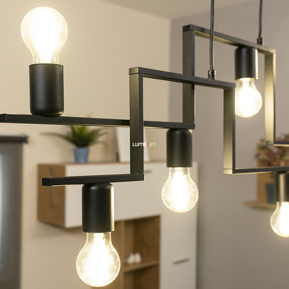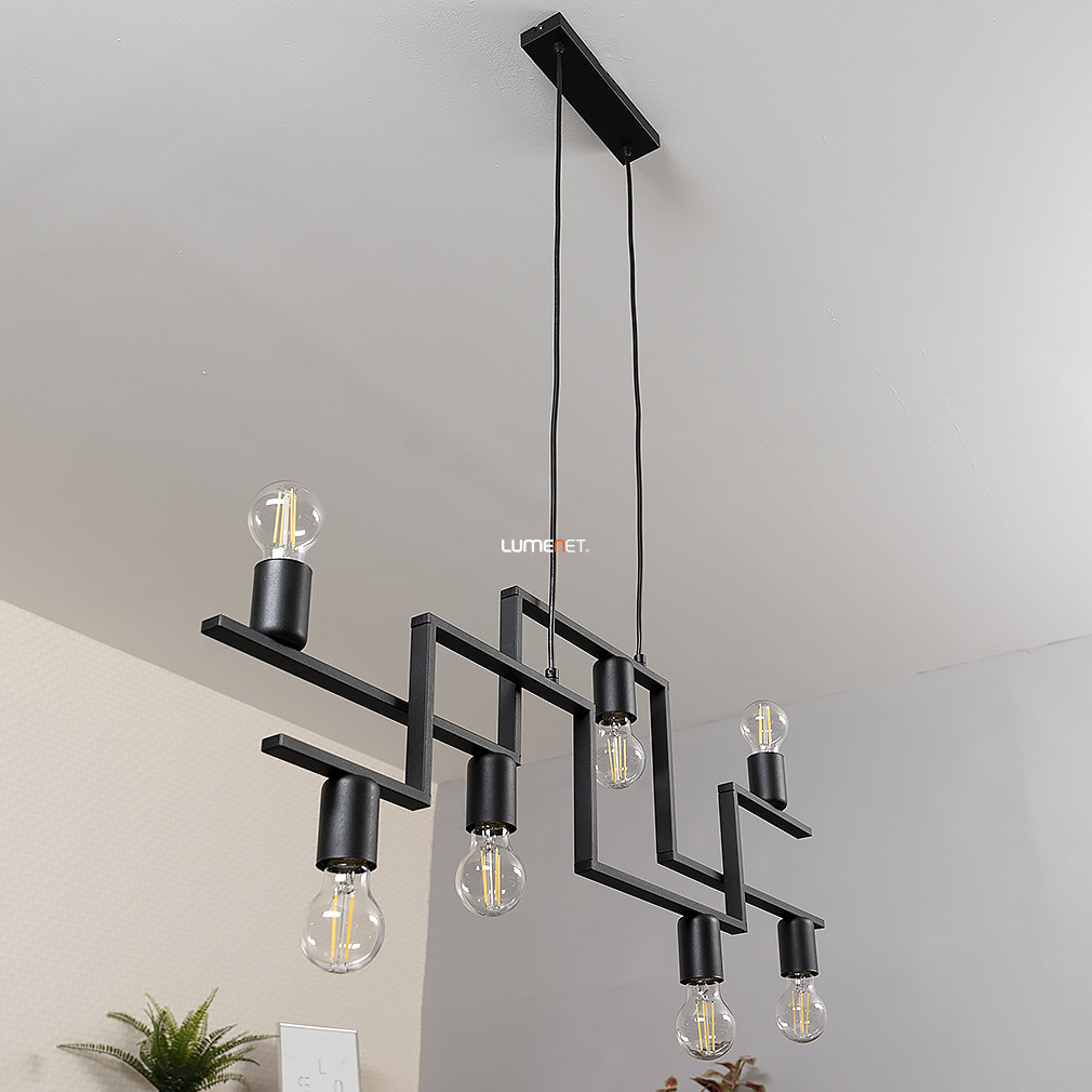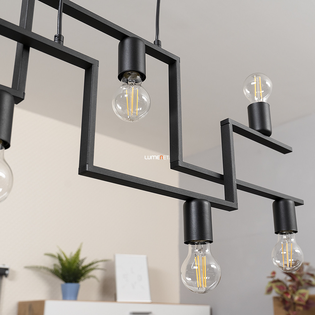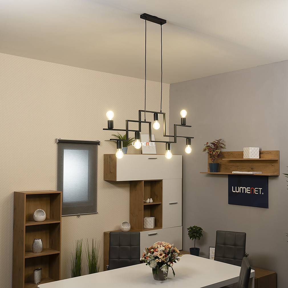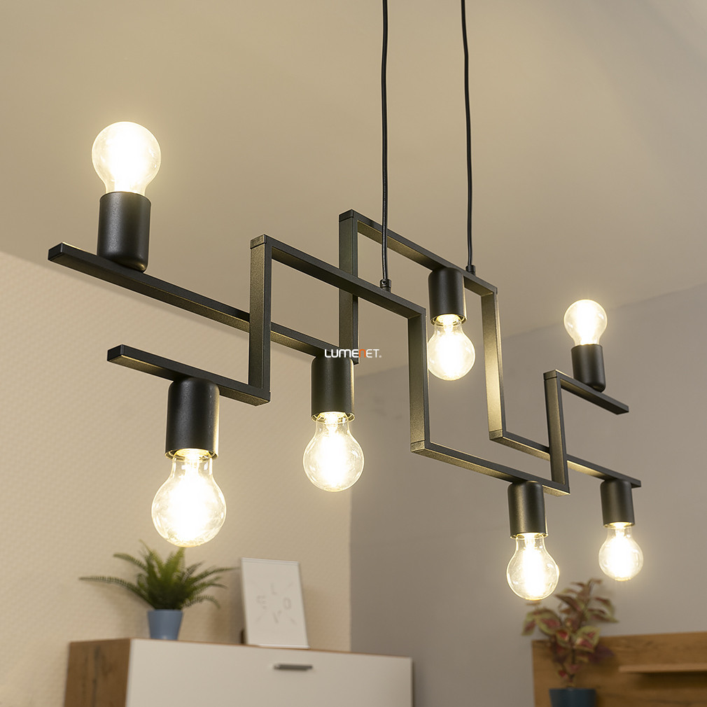 Lampa suspendată Labirintus cu 7 socluri, model Fembard Eglo 43365, este un corp de iluminat negru, în stil vintage, realizat din oțel. Lampa are șapte socluri E27, pentru care sursele de lumină pot fi achiziționate separat, astfel încât fluxul luminos, temperatura culorii și puterea depind de becurile selectate. Lampa nu este reglabilă și are un grad de protecție IP20, fiind potrivită pentru utilizare în interior. Dimensiunile produsului: lungime 1005 mm, lățime 40 mm, înălțime 1100 mm, greutate 2,76 kg. Dimensiunile ambalajului: 8 mm lățime, 37 mm lungime și 103 mm înălțime. Codul logistic al lămpii este 43365, iar aceasta este fabricată de EGLO.