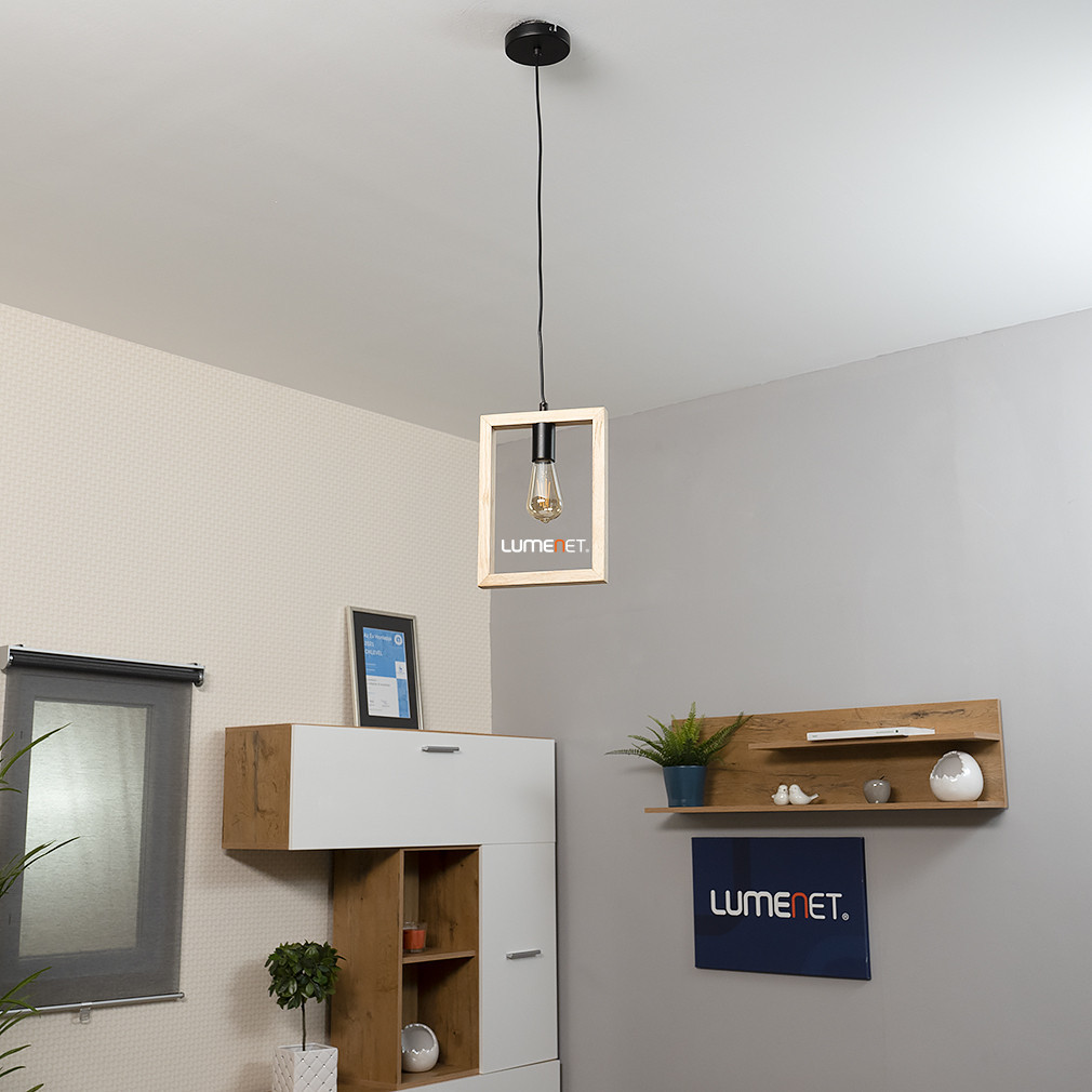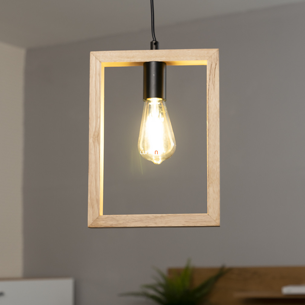Lampa suspendată Minimal într-un cadru natural, model Indigo Rábalux 2292, este un corp de iluminat în stil vintage, realizat din metal negru și lemn de culoarea lemnului. Lampa are o singură soclu E27, care poate fi echipată cu o sursă de lumină înlocuibilă, permițându-vă să alegeți liber fluxul luminos, puterea și temperatura culorii. Lampa nu include sursa de lumină. Produsul are protecție IP20, fiind potrivit pentru utilizare în interior. Dimensiuni: 300 mm lungime, 220 mm lățime și 1300 mm înălțime. Dimensiunile ambalajului sunt: 23 cm lățime, 5 cm lungime și 33 cm înălțime. Produsul cântărește 2,8 kg. Lampa este fabricată de Rábalux, cod logistic 2292.