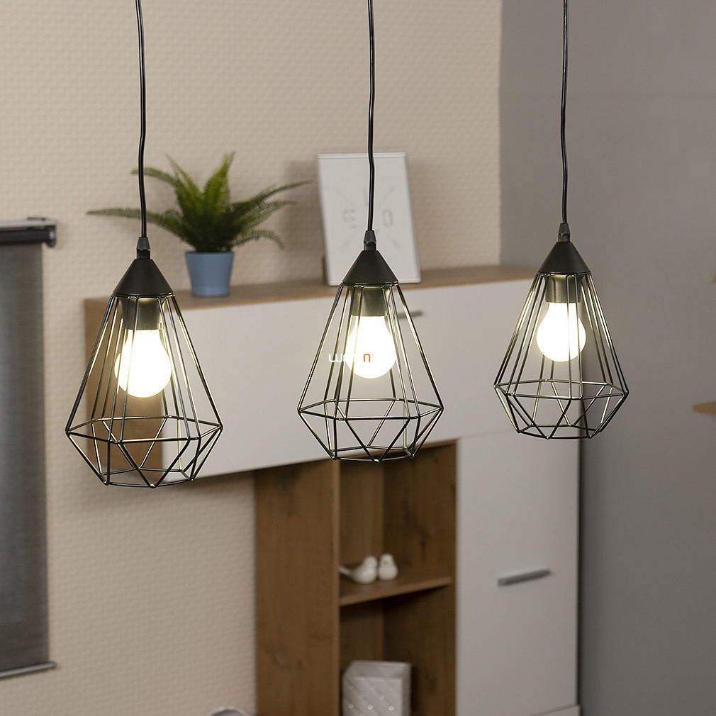 Lampa suspendată Tarbes Eglo 94189 negru este una dintre cele mai spectaculoase și generoase piese din colecție. Cu o lățime de 79 cm și trei corpuri de iluminat separate, această compoziție este un corp de iluminat care definește spațiul, care nu numai că luminează, dar conferă și direcție, atmosferă și ritm vizual camerei. Acest model este alegerea ideală pentru iluminarea meselor de sufragerie, insulelor de bucătărie, sufrageriilor cu galerie, studiourilor sau chiar cafenelelor și birourilor, unde scopul nu este doar de a oferi lumină, ci și de a crea un caracter unic. Cele trei corpuri de iluminat pot fi agățate separat de o șină metalică alungită de tavan, care, cu o lățime de 79 cm, unifică vizual aranjamentul. Forma geometrică regulată și structura din sârmă a abajururilor sunt caracteristice colecției Tarbes, făcând referire atât la stilul industrial de la mijlocul secolului, cât și la spiritul minimalist contemporan de astăzi. Abajururile din plasă metalică par ușoare, aproape plutind în spațiu, în timp ce forma și materialul lor precis și ascuțit transmit fiabilitate și stabilitate. Întregul corp de iluminat este realizat din metal cu finisaj negru acoperit cu pulbere, ceea ce îi conferă un aspect mat, discret, dar distinctiv. Această variantă de culoare se potrivește deosebit de bine în interioare contrastante, cum ar fi pereții deschiși la culoare, suprafețele din lemn natural sau fundalurile din cărămidă brută, dar se integrează armonios și în interioare mai întunecate, monocrome, unde forma domină. Contrastul dintre nodurile negre și sursele de lumină creează o atmosferă specială – seara, acestea par aproape sculpturi iluminate. Cele trei socluri E27 permit o iluminare uniformă de-a lungul spațiului mai lung, rămânând în același timp personalizabile prin tipul surselor de lumină. În cazul acestui model, este deosebit de important ca sursa de lumină să se potrivească cu estetica și funcția structurii din sârmă deschisă. Deși LED-urile tradiționale cu filament de sticlă transparentă sunt spectaculoase, acestea nu sunt recomandate pentru astfel de abajururi, deoarece pot provoca o strălucire neplăcută, mai ales atunci când sunt amplasate la nivelul ochilor. Prin urmare, este recomandabil să alegeți surse de lumină LED cu filament de sticlă opală sau fumurie. Sursele de lumină opale oferă o lumină difuză, omogenă, care nu orbește și funcționează bine atunci când lampa se află în câmpul vizual direct. Sursele de lumină cu abajur din sticlă fumurie oferă o lumină mai moale, dar sunt și mai elegante din punct de vedere vizual, tonurile lor întunecate armonizându-se perfect cu abajururile din metal negru. Aceste surse de lumină nu sunt doar mai bune din punct de vedere tehnic, ci și îmbunătățesc designul corpului de iluminat, creând o unitate vizuală cu acesta.