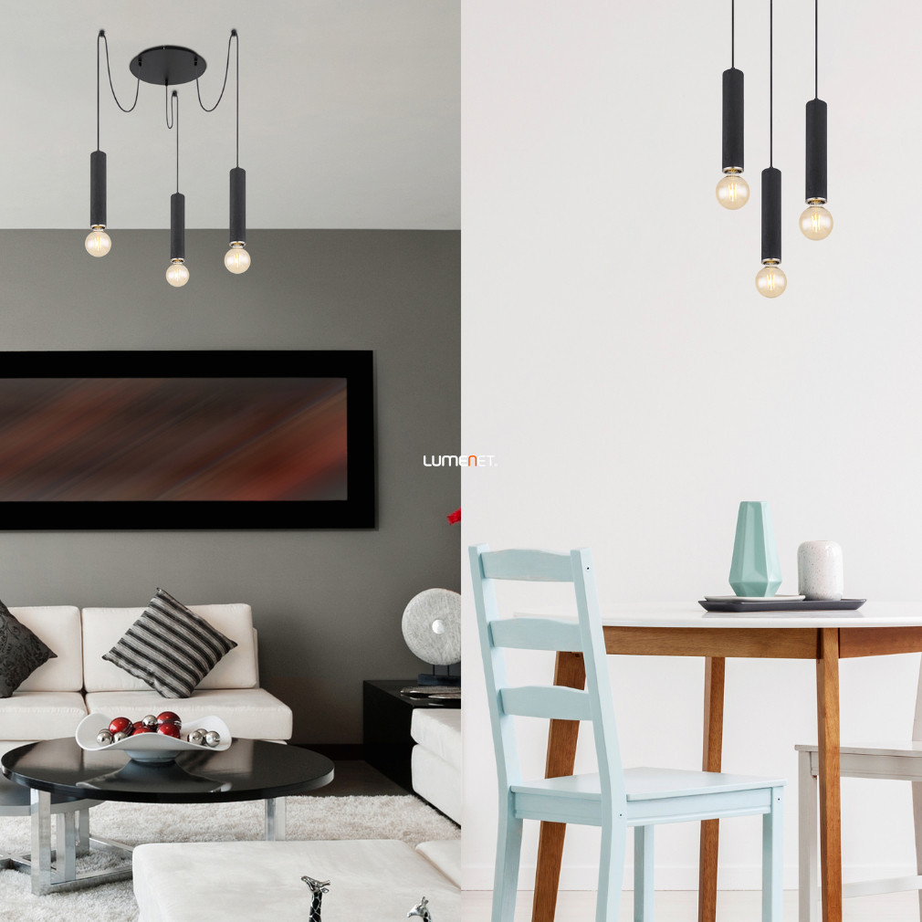 Lampă suspendată, neagră, cu trei socluri - Marion Globo 15499-3H
