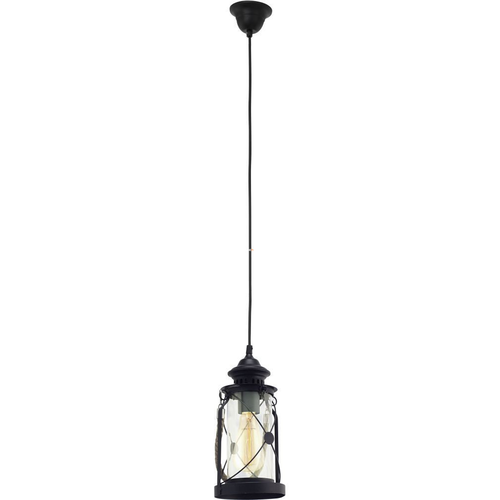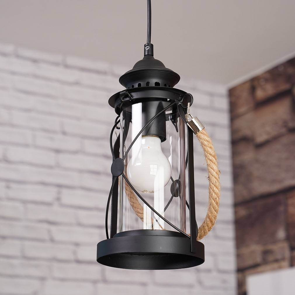 Lampa suspendată Bradford Eglo 49213 este un corp de iluminat în stil rustic, de culoare neagră, fabricat din oțel și sticlă, care are un soclu E27. Lampa are un diametru de 140 mm și o înălțime maximă de 1100 mm, fiind o alegere ideală pentru iluminarea diverselor interioare. Produsul nu include o sursă de lumină, astfel încât fluxul luminos, culoarea luminii, puterea și temperatura culorii depind de sursa de lumină înlocuibilă selectată. Lampa nu este reglabilă și are un grad de protecție IP20, fiind potrivită pentru utilizare în interior. Dimensiunile ambalajului sunt: 15 cm lățime, 15 cm lungime și 33 cm înălțime. Produsul cântărește 1 kg și este fabricat de EGLO.