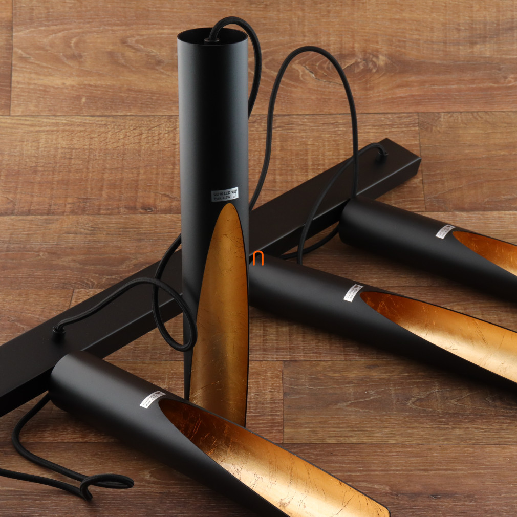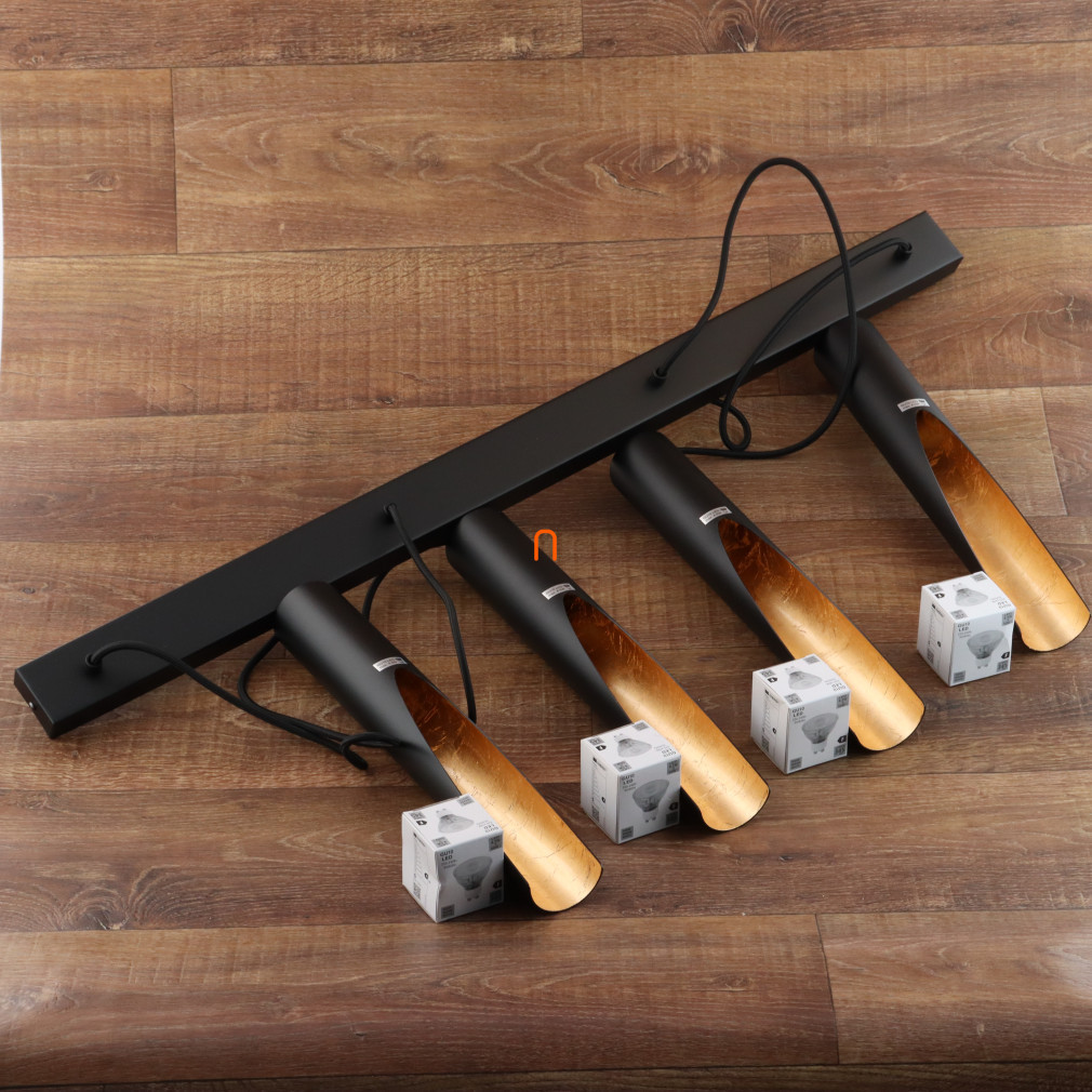 Lampa suspendată Barbotto Eglo 900873 îmbunătățește aspectul vizual al spațiilor interioare datorită designului său modern și combinației de culori negru și auriu. Corpul lămpii este fabricat din oțel și are patru socluri GU10, pentru care sursa de lumină este inclusă. Lungimea totală a lămpii este de 925 mm, lățimea este de 60 mm, iar înălțimea este de 1100 mm. Are un grad de protecție IP20, fiind ideală pentru utilizare în interior. Sursa de lumină înlocuibilă vă permite să personalizați fluxul luminos, temperatura culorii și puterea. Produsul cântărește 3,73 kg, iar dimensiunile ambalajului sunt 93 cm lungime, 18 cm lățime și 7 cm înălțime. Lampa este fabricată de EGLO și are codul logistic 900873.