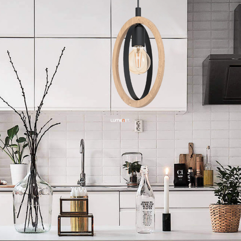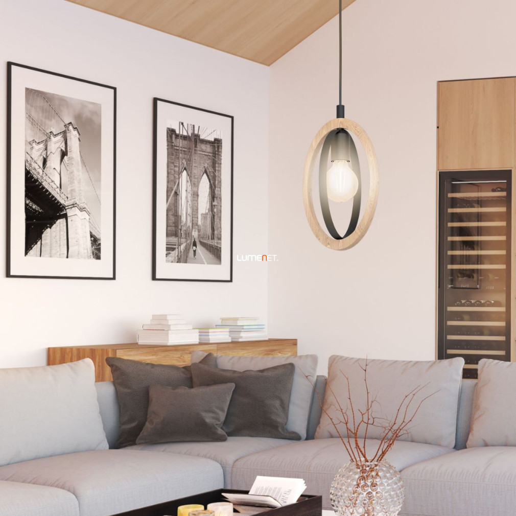 Lampă suspendată, negru și culoarea lemnului - Basildon Eglo 43461