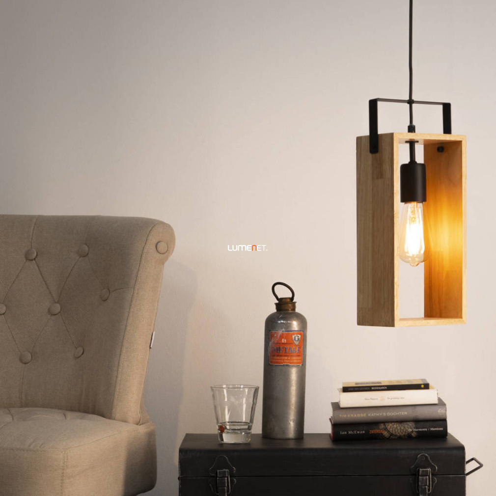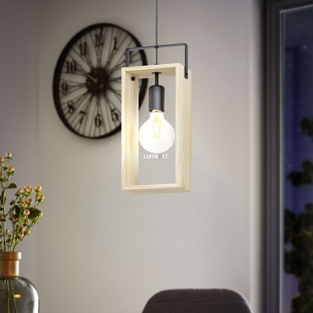 Lampă suspendată, negru și culoarea lemnului - Famborough Eglo 43413