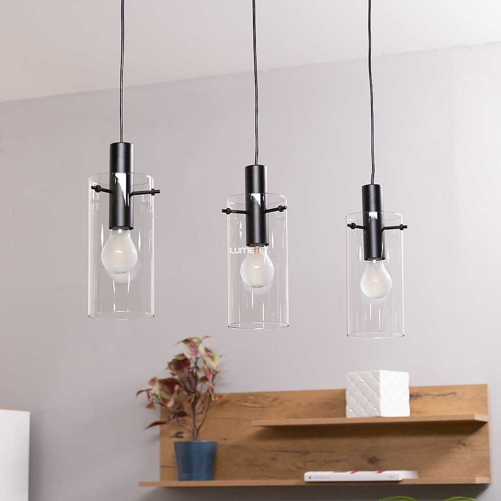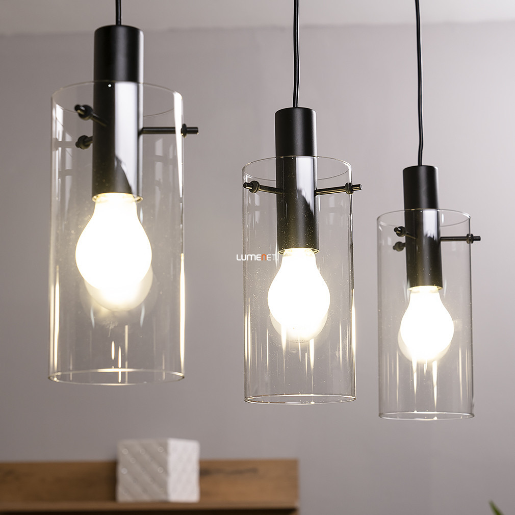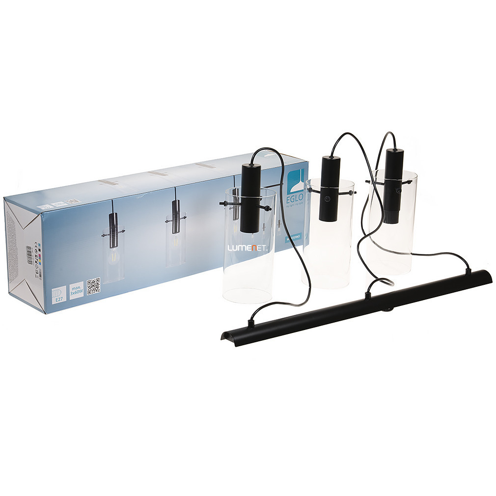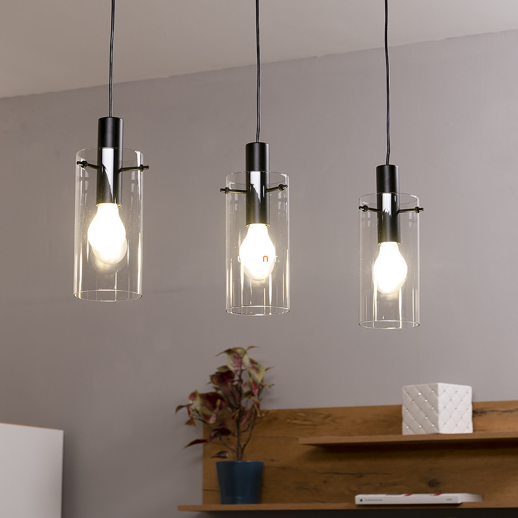 Lampă suspendată, negru translucid, cu trei socluri - Montefino Eglo 97367