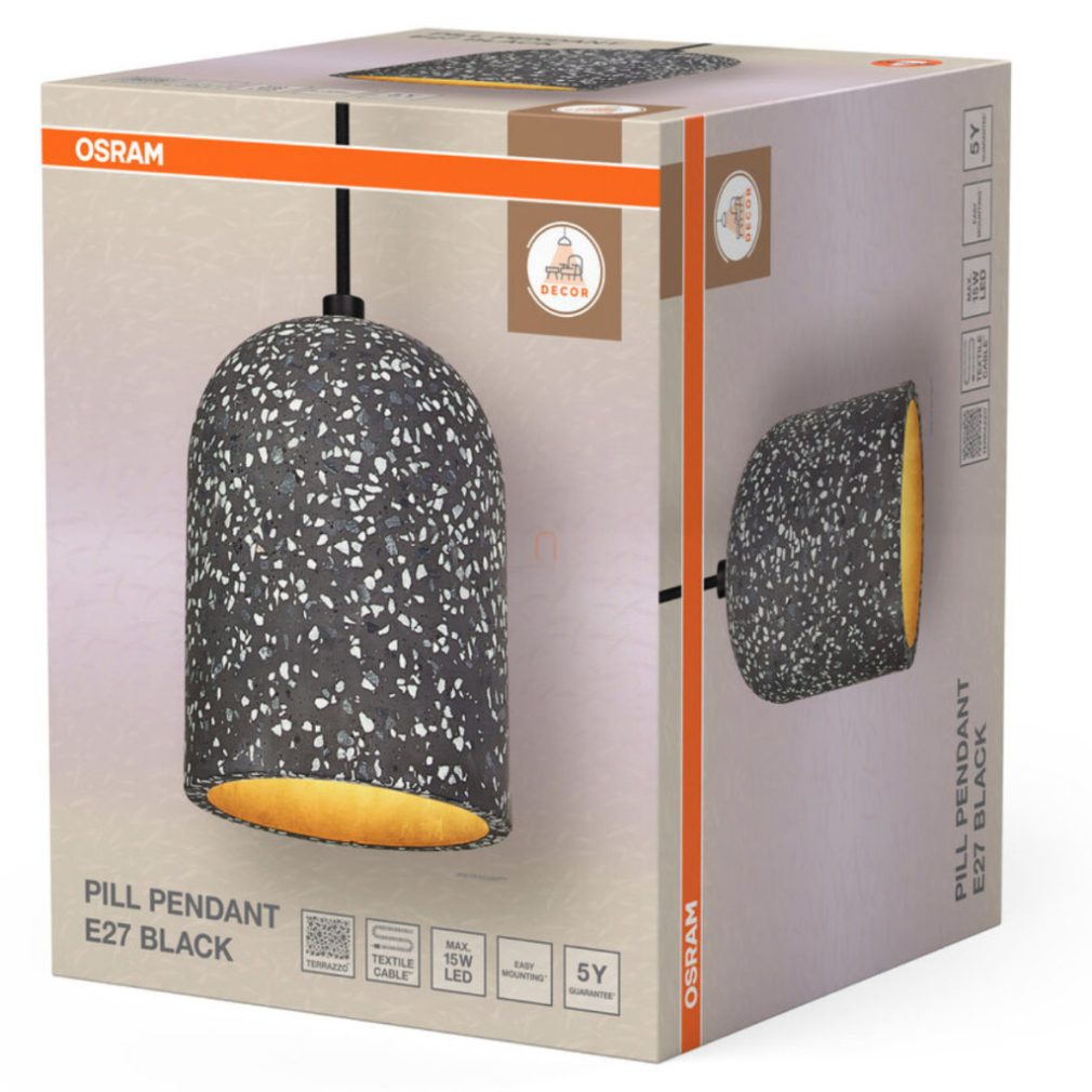 Lampa suspendată Osram Decor Pill cu model terrazzo, culoare negru