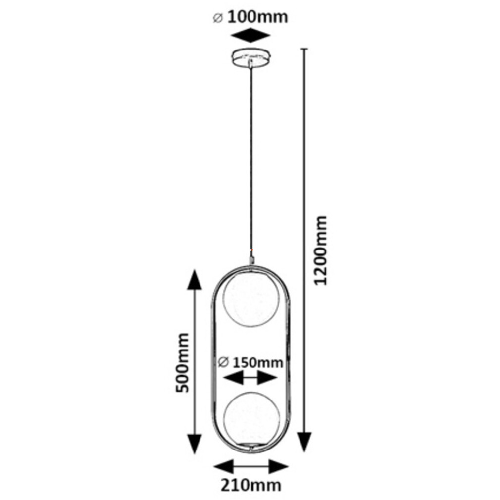 Lampa suspendată Oval în negru mat, Ghita Rábalux 72029, este o soluție modernă de iluminat pentru locuințe, cu două socluri E27, ceea ce o face compatibilă cu o varietate de surse de lumină interschimbabile. Materialele principale ale lămpii sunt metalul și sticla, completate de un cablu textil pentru un aspect elegant. Produsul are un diametru de 500 mm, o înălțime de 1200 mm și o lungime de 210 mm, fiind potrivit pentru încăperi cu tavane înalte. Clasa de protecție IP20 îl face potrivit pentru utilizare în interior. Sursa de lumină nu este inclusă în pachet. Greutatea totală a lămpii este de 1,21 kg, iar dimensiunile ambalajului sunt 21x16x55 cm. Producătorul este Rábalux.