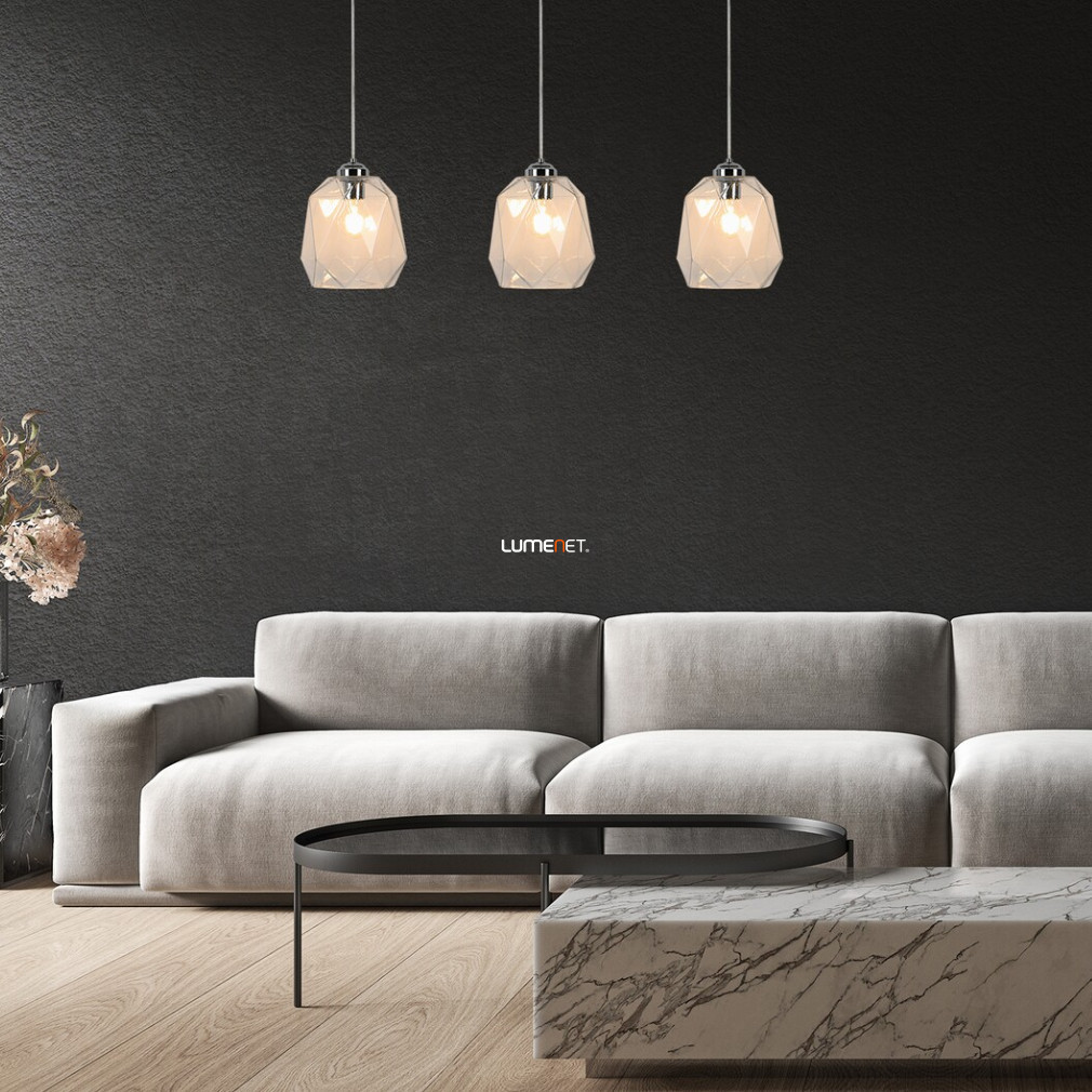 Lampa suspendată Shivani Rábalux 72012 are un design modern, caracterizat prin utilizarea materialelor metalice și sticlă și o combinație de culori cromate și translucide. Lampa are un singur soclu E27, compatibil cu surse de lumină înlocuibile, astfel încât fluxul luminos, culoarea luminii, puterea și temperatura culorii pot fi ajustate în funcție de becul ales. Produsul are un diametru de 200 mm, o înălțime de 1250 mm și o greutate de 1,44 kg. Are un grad de protecție IP20, fiind adecvat pentru utilizare în interior. Dimensiunile ambalajului sunt 35 x 26 x 35 cm. Lampa nu include o sursă de lumină, care poate fi achiziționată separat. Shivani Rábalux 72012 este disponibilă la Rábalux, cu codul logistic 72012.