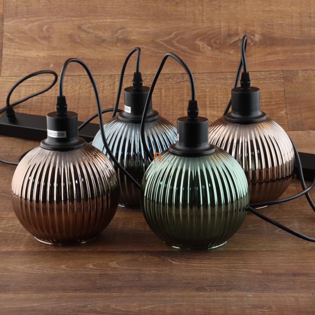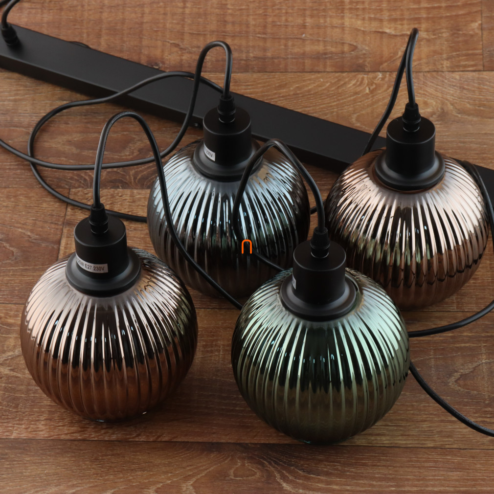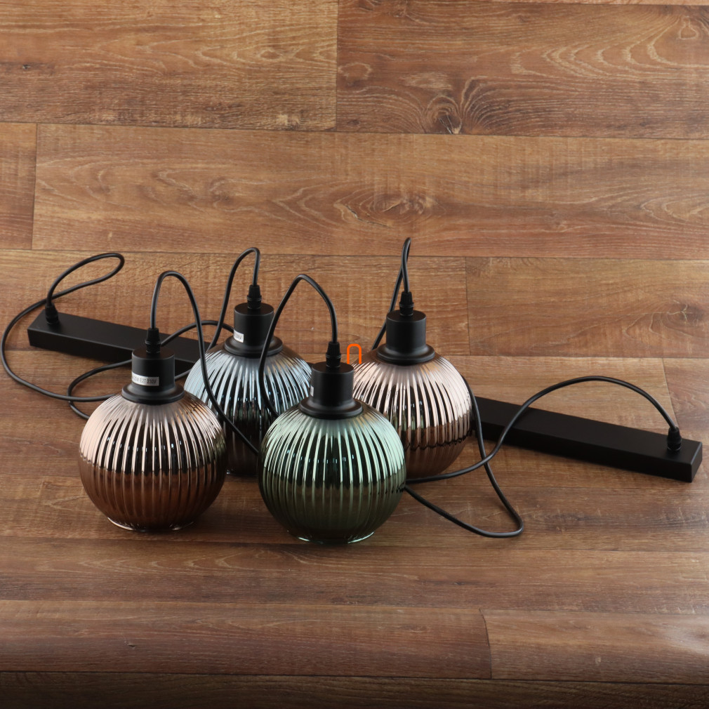 Lampă suspendată tricoloră cu abajur din sticlă striată, 4 socluri - Zumba Globo 15638-4