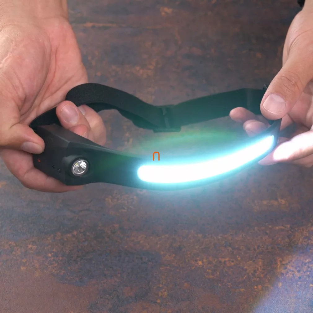 Lanterna frontală LED cu baterie de 1200 mAh, funcție de lumină concentrată + difuză, max. 350 lm, comutabilă cu o mișcare a mâinii, cablu USB tip C, IP54 deLux DEL1774