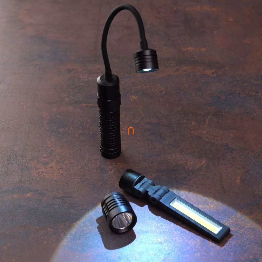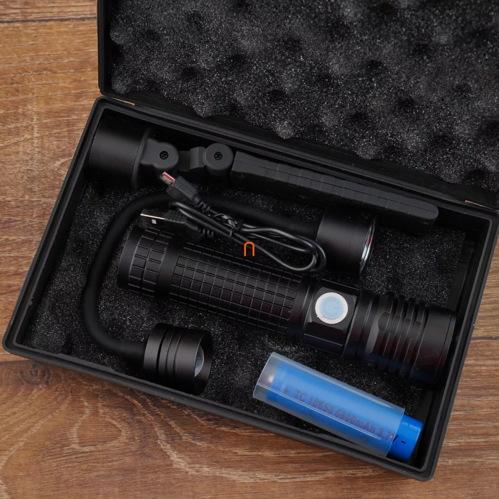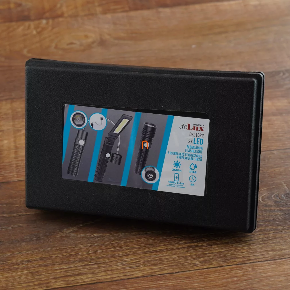 DEL1622 Lanternă LED, 3 capete diferite, reîncărcabilă (1x18650), 350lm, în cutie de plastic, deLux