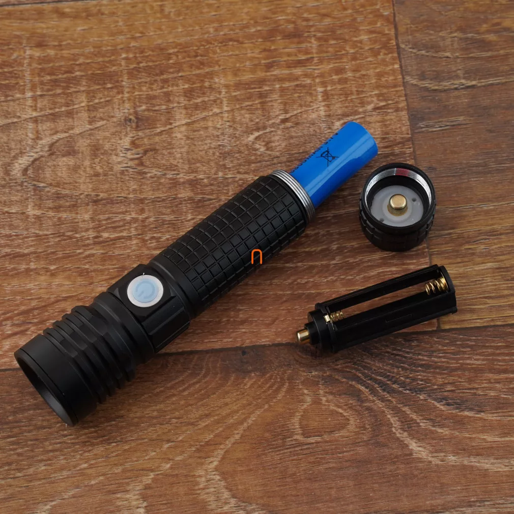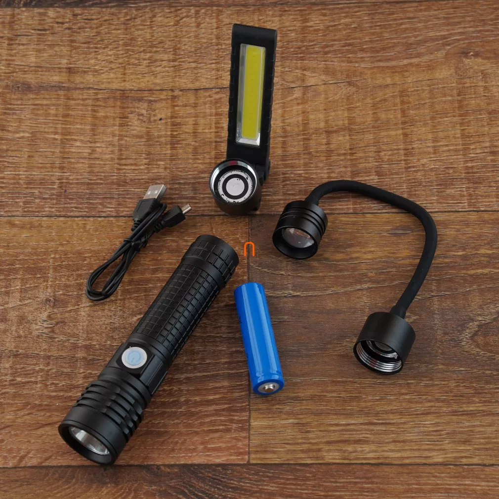 Lanterna LED, 3 capete diferite, reîncărcabilă (1x18650), 350lm, în cutie de plastic (DEL1622)