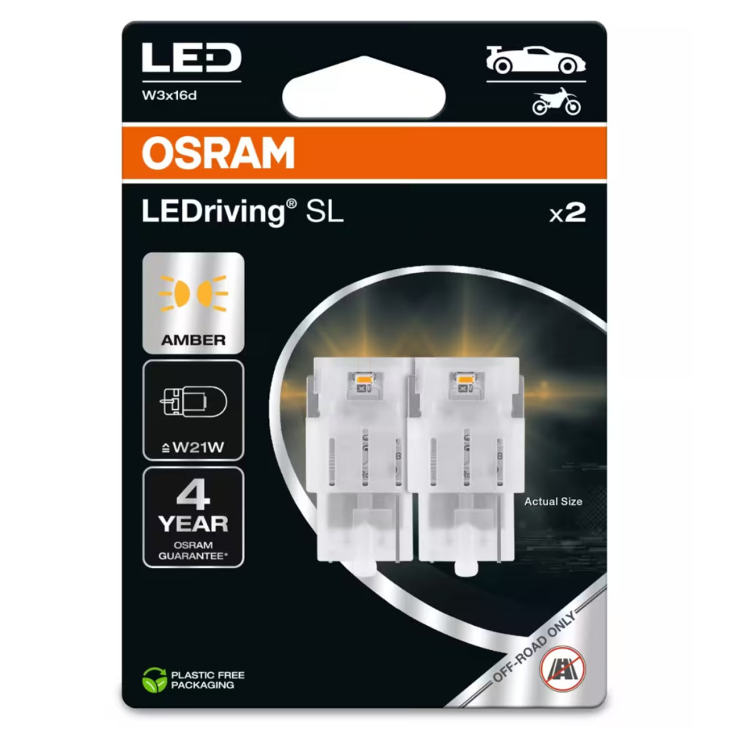Bec LED Osram LEDriving SL W21W chihlimbar, lumină indicatoare puternică cu tehnologie modernă, ≙ W21W, soclu W3x16d, 7505DYP-2BL