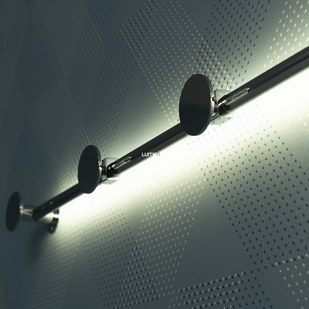 Lampa LED Ledvance pentru montare pe perete, cu lumina sa albă caldă și finisajul cromat, conferă un aspect modern oricărei încăperi. Corpul de iluminat are un modul LED încorporat de 12 W care oferă o putere luminoasă de 800 lumeni la o temperatură de culoare de 3000 K, rezultând o lumină albă caldă și plăcută. Corpul din oțel de culoare argintie are protecție IP44, ceea ce îl face sigur pentru utilizarea în băi și alte zone umede. Lampa măsoară 850 mm lungime, 55 mm lățime și 195 mm înălțime și cântărește 0,95 kg. Durata medie de viață este de 30.000 de ore, cu o eficacitate luminoasă de 66 lm/W. Dimensiunile ambalajului produsului sunt: 90 mm lățime, 10 mm lungime și 24 mm înălțime. Producătorul este Ledvance.